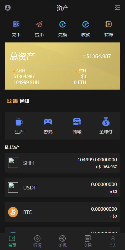 区块链系统/USDT/BTC/ETH/SPC/数字钱包/程序