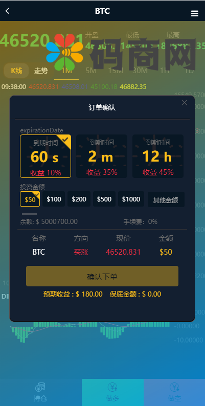 K线完美正常实时跳动,需要国外服务器安装,系统为虚拟币USDT充值