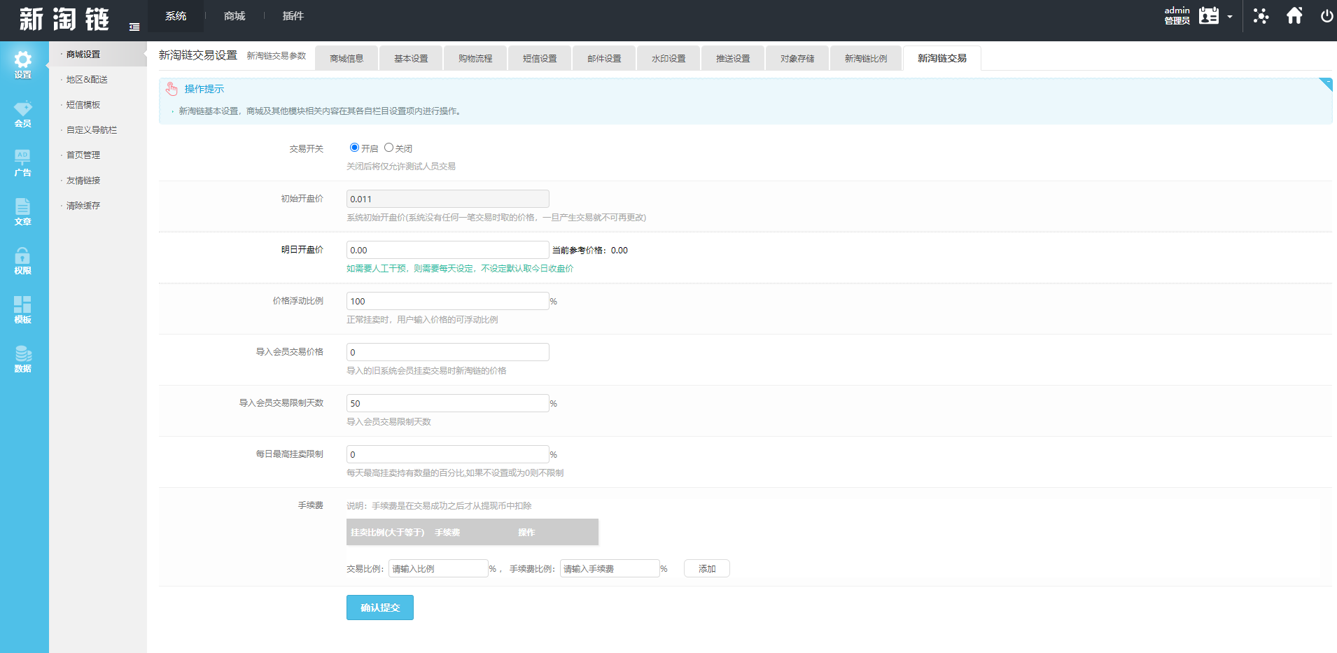 1.公司发行1亿,原始价格为1.10元 2.会员之间挂卖购买交易 3.挂卖价格上下浮动2%(可设置),以前一天的收盘价为第二天挂卖上下浮动标准,页面上显示一个成交价。 4.挂卖列表:以价格从低到高排序,价格的排在列表最前 需要有走势图 5.买方用消费算力进行购买新淘链,确定购买锁定记录成功,卖方得到的是提现币。 6.设置每天可挂卖持有数量的5%. |
