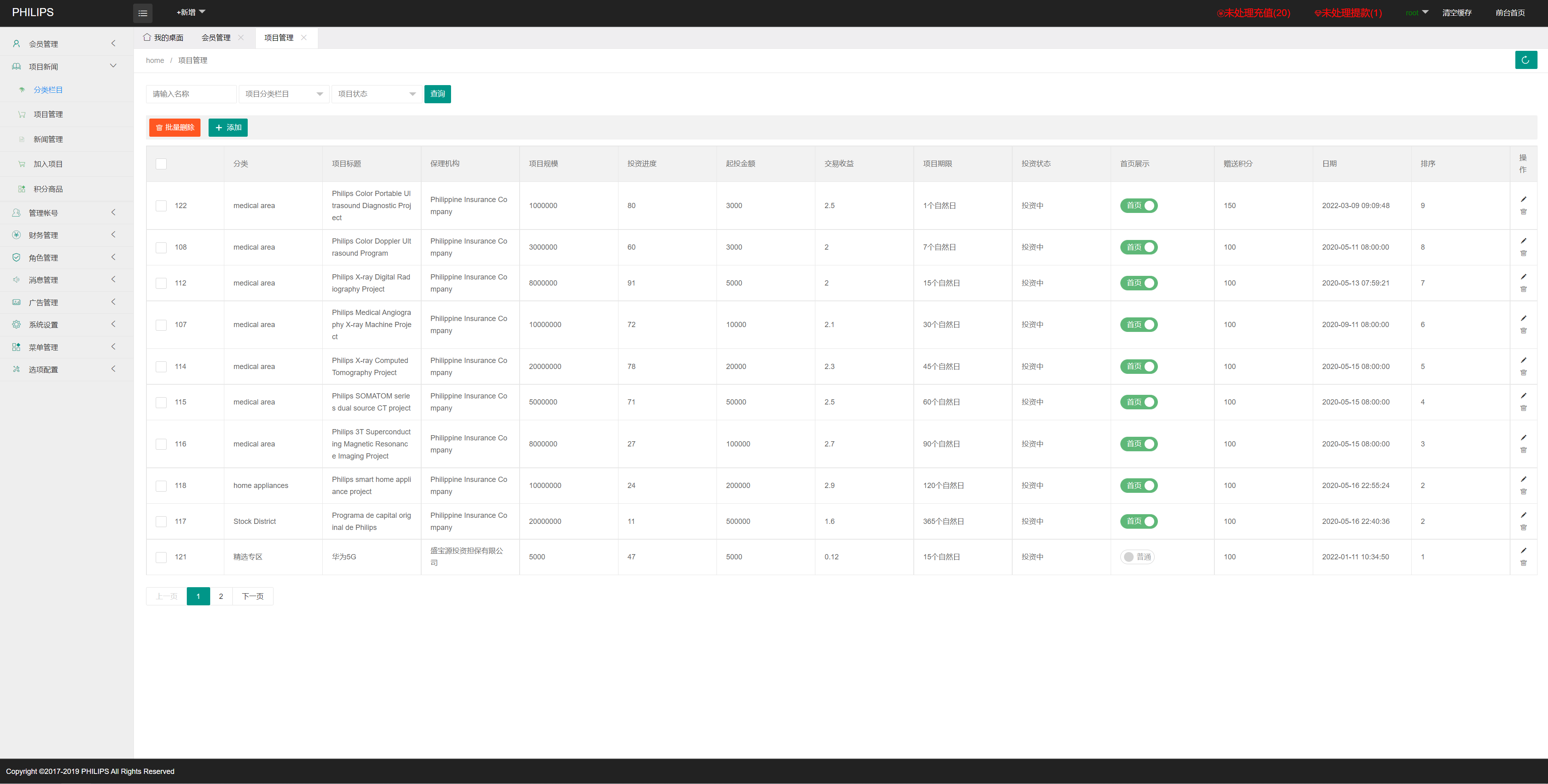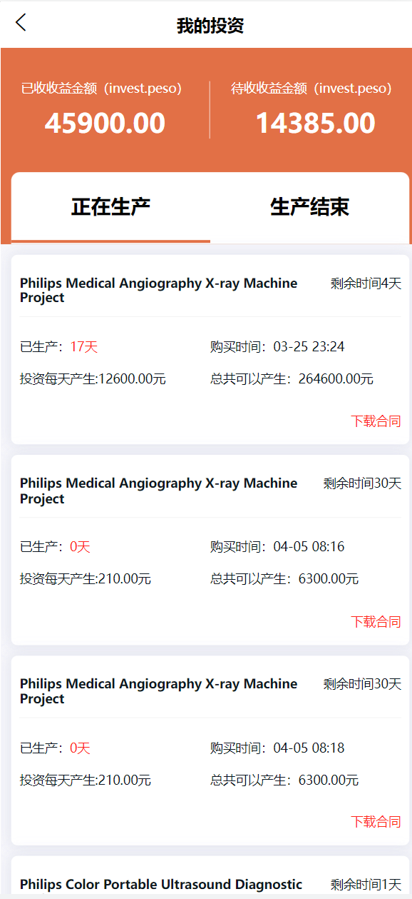购买项目分红,后台可设置利息,金额,每日返佣