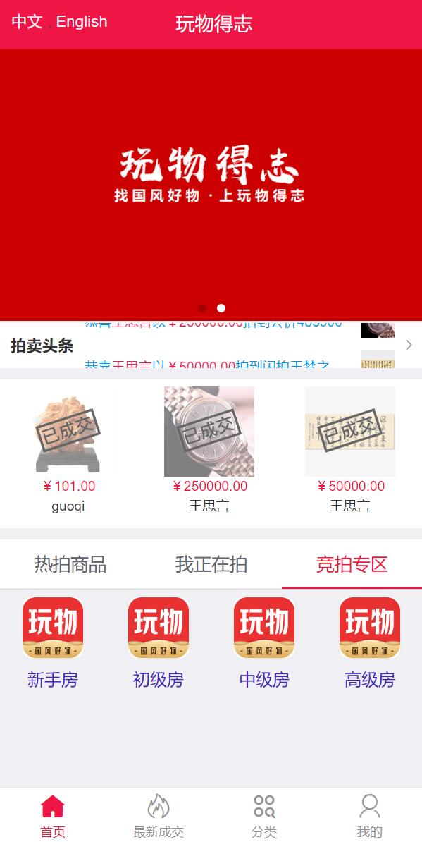 双语言版竞拍系统/竞拍转拍源码/竞拍商城/商场寄售系统