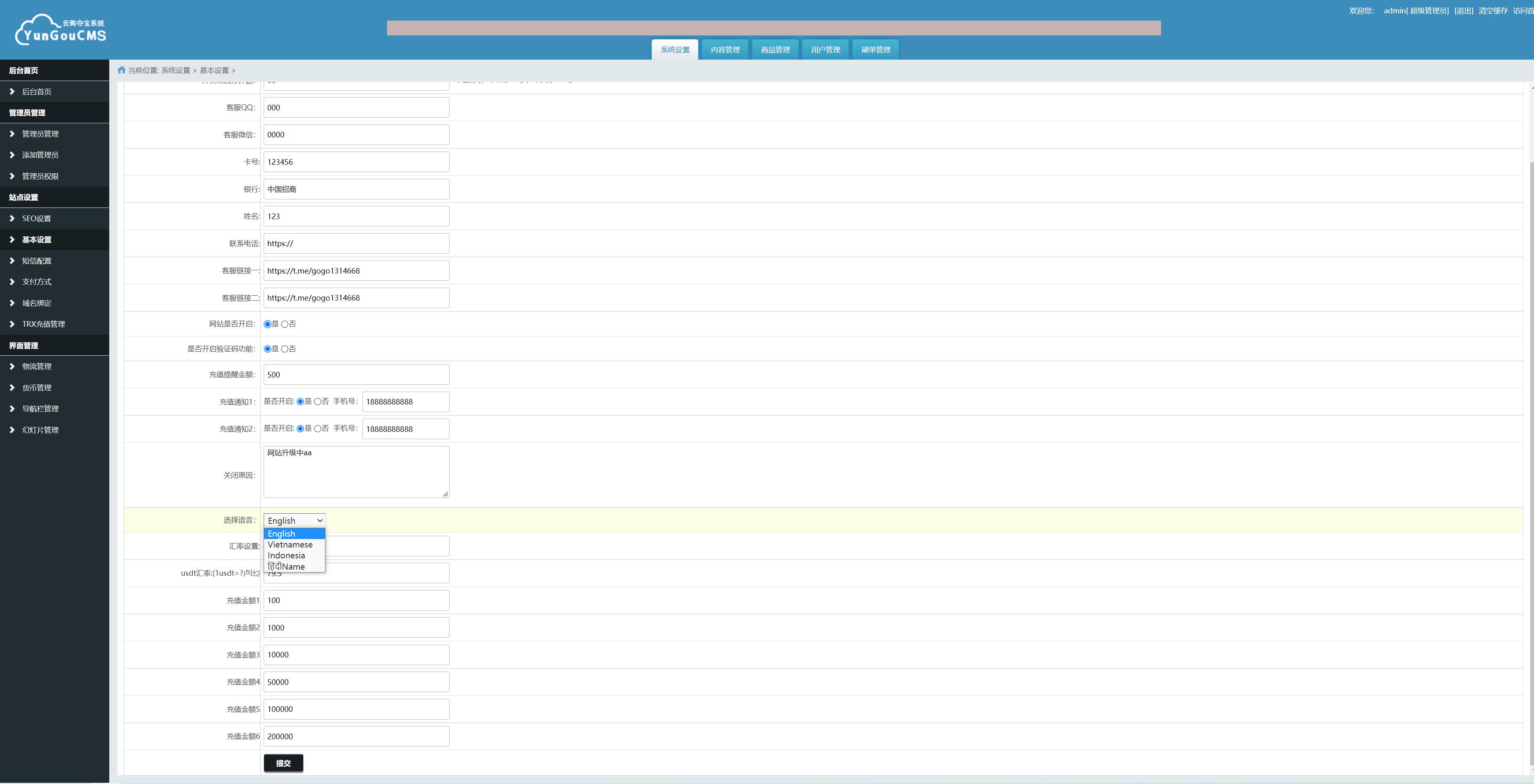 前端新增四种语言,支持任意切换,后台设置默认语言