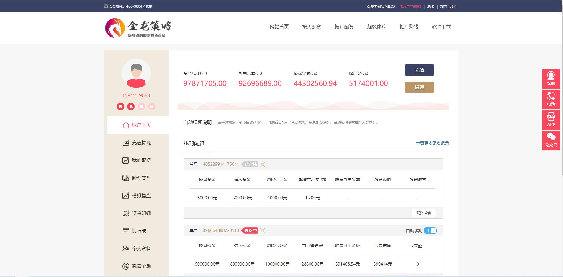 2022修复版配资系统/A股股票系统/买点策略/pc+wap可封装