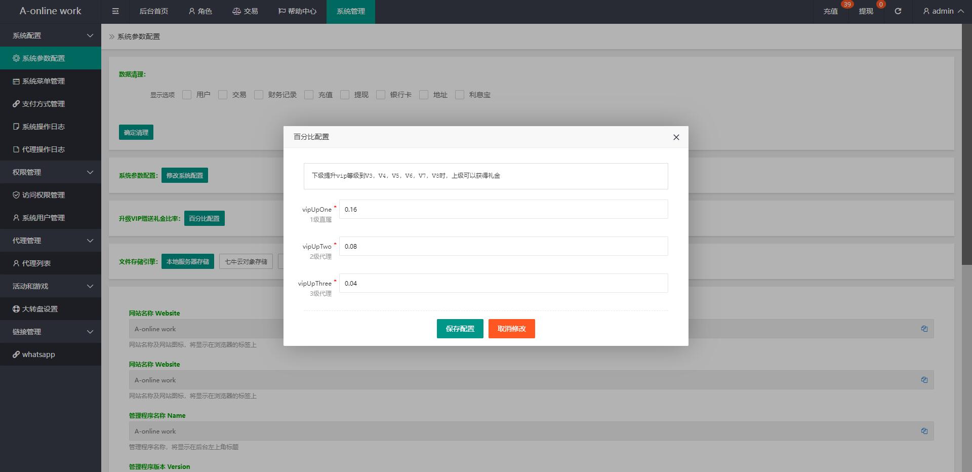 系统新增了多个小功能如单独代理后台、预约排单、自动抢单、利息宝、升级VIP送礼金、大转盘抽奖等