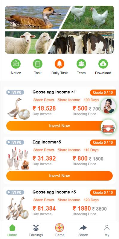另UI海外版理财系统/养鸡养鸭投资系统/投资理财源码/任务图推广注册奖励