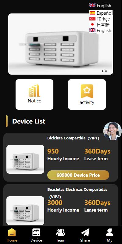 海外多语言投资理财系统/投资理财源码/共享充电宝系统