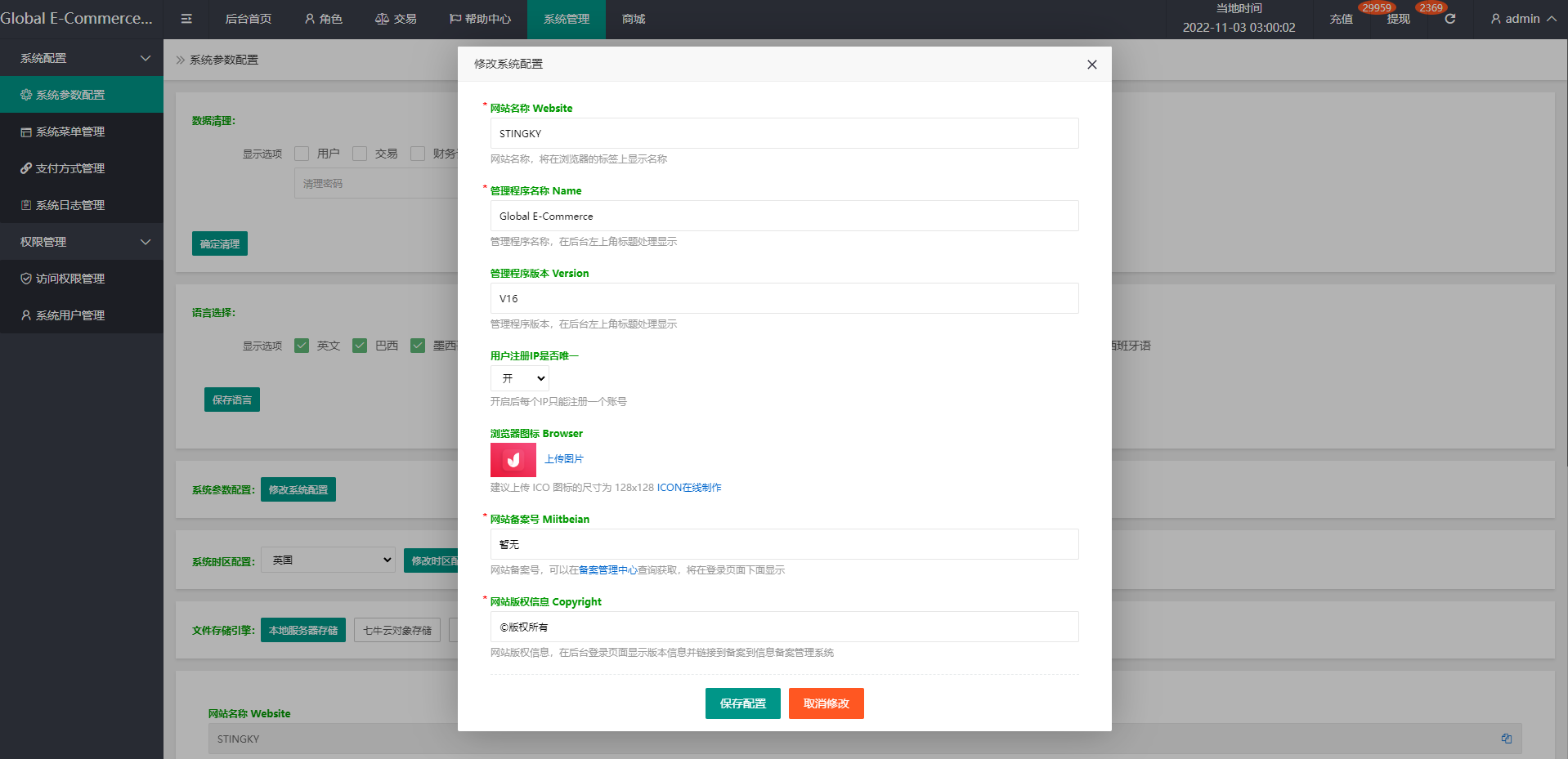全新定制UI,前端多语言后台可控制,可设置默认语言和默认时区