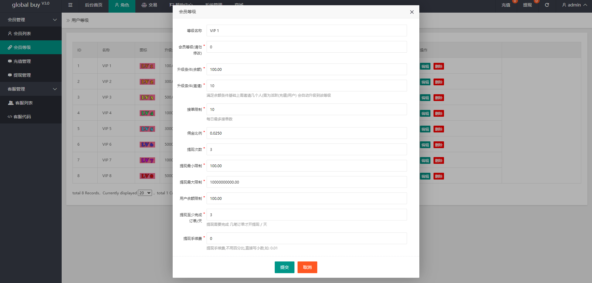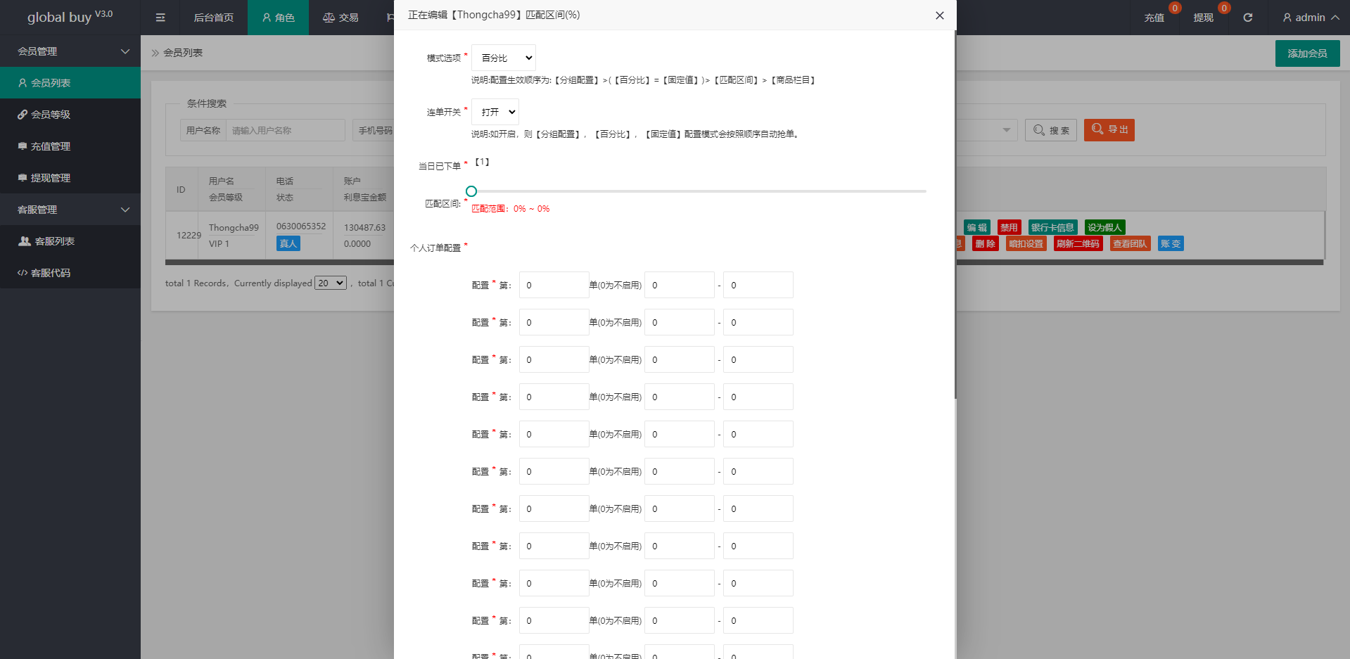 功能支持分组、百分比、固定值、连单设置、充值彩金等众多功能