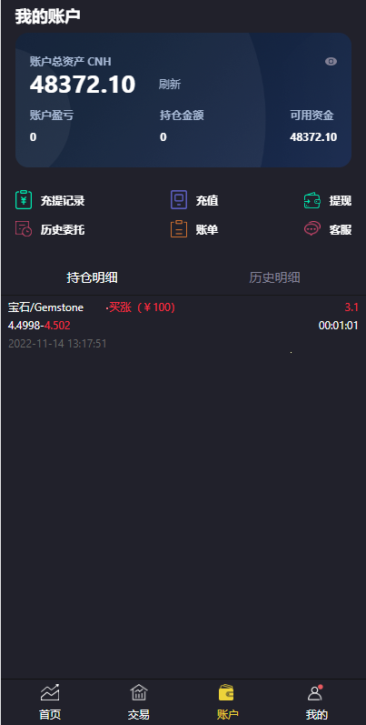 一套二开前端UI得贵金属微交易系统,前端产品后台可任意更换