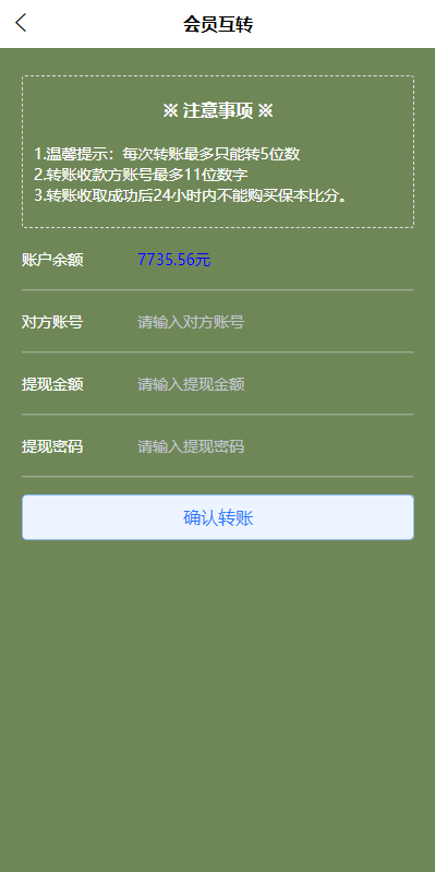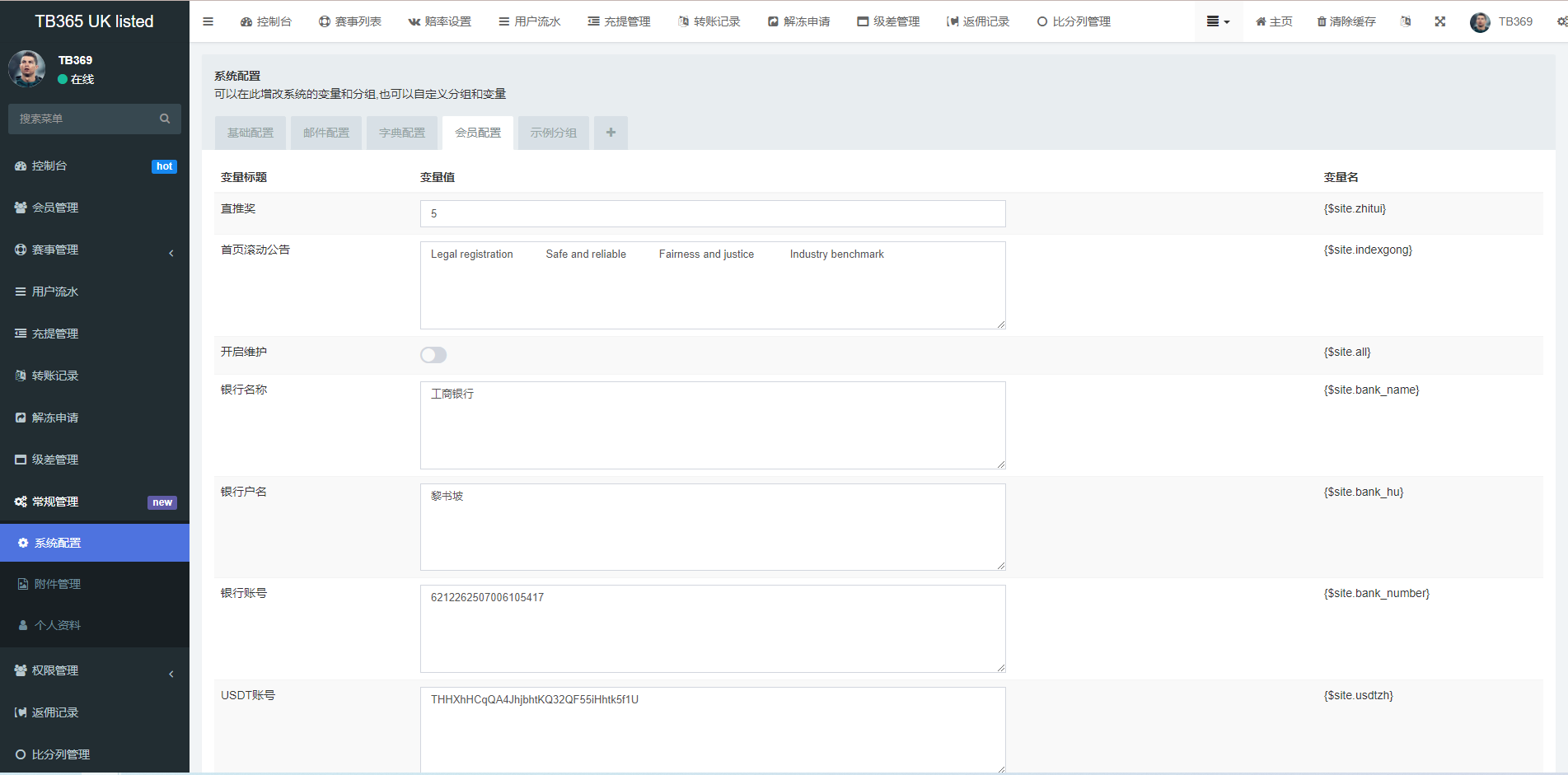 支持USDT充值,会员互转等功能,默认对接的采集球探失效了,需要自行从新对接