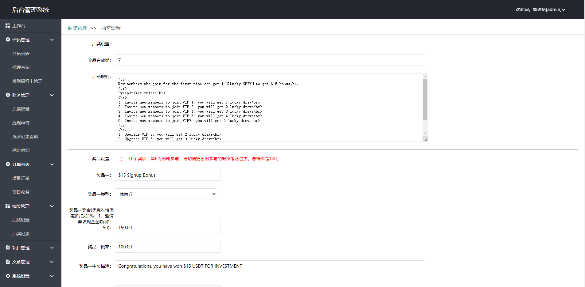 1.转盘:一共6个奖项,第6为谢谢参与,谢谢参与的概率考虑进去,总概率是100 ,