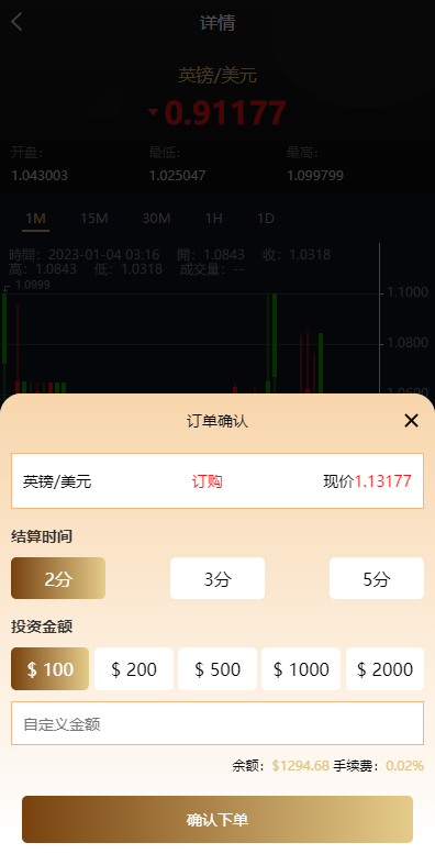 此套海外团队全新开发的微盘系统,支持外汇、区块链、贵金属