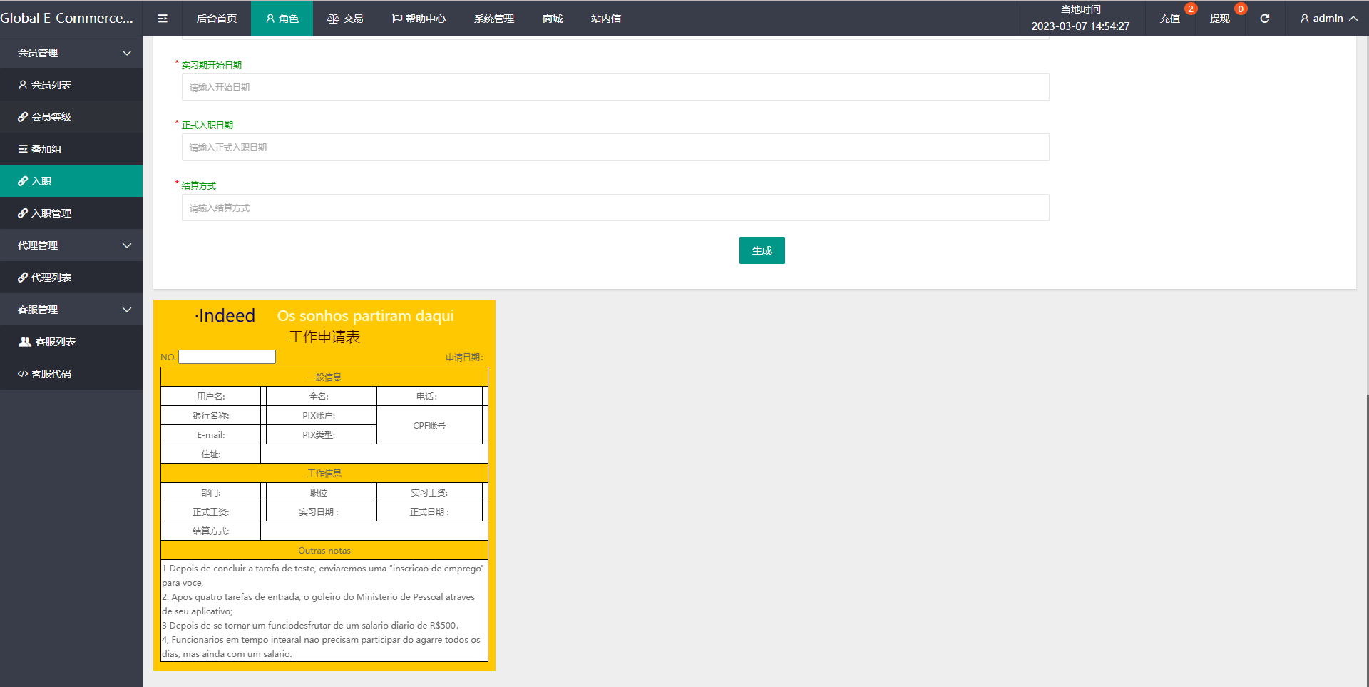 此套全新定制前端UI,新增入职生成图片功能等一些小功能