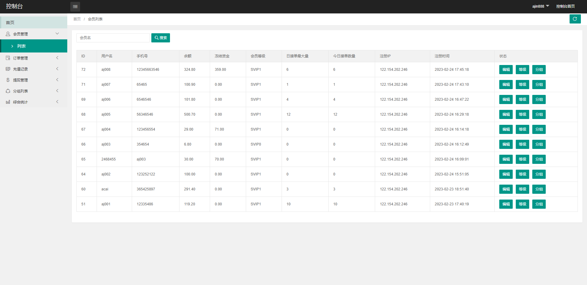 系统附带单独的代理后台,邀请功能-可自建团队,获得更多佣金,升级会员等