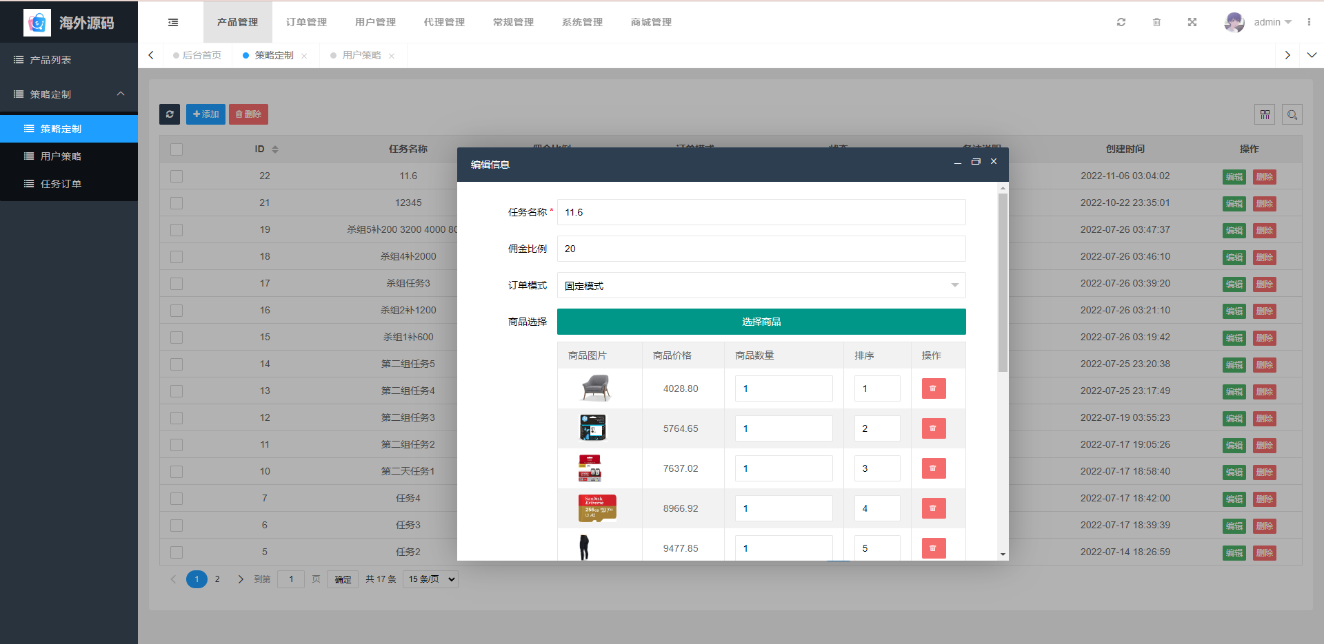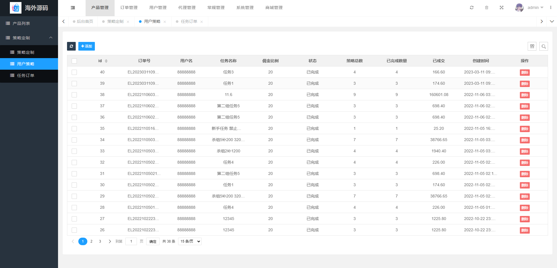 支持用户策略定制在线派单,系统基本符合市场需求,单独的代理后台等功能