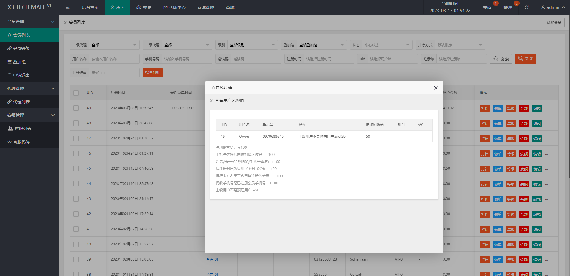 此套别人二开的海外抢单刷单系统,新增用户风险值、最后做单时间
