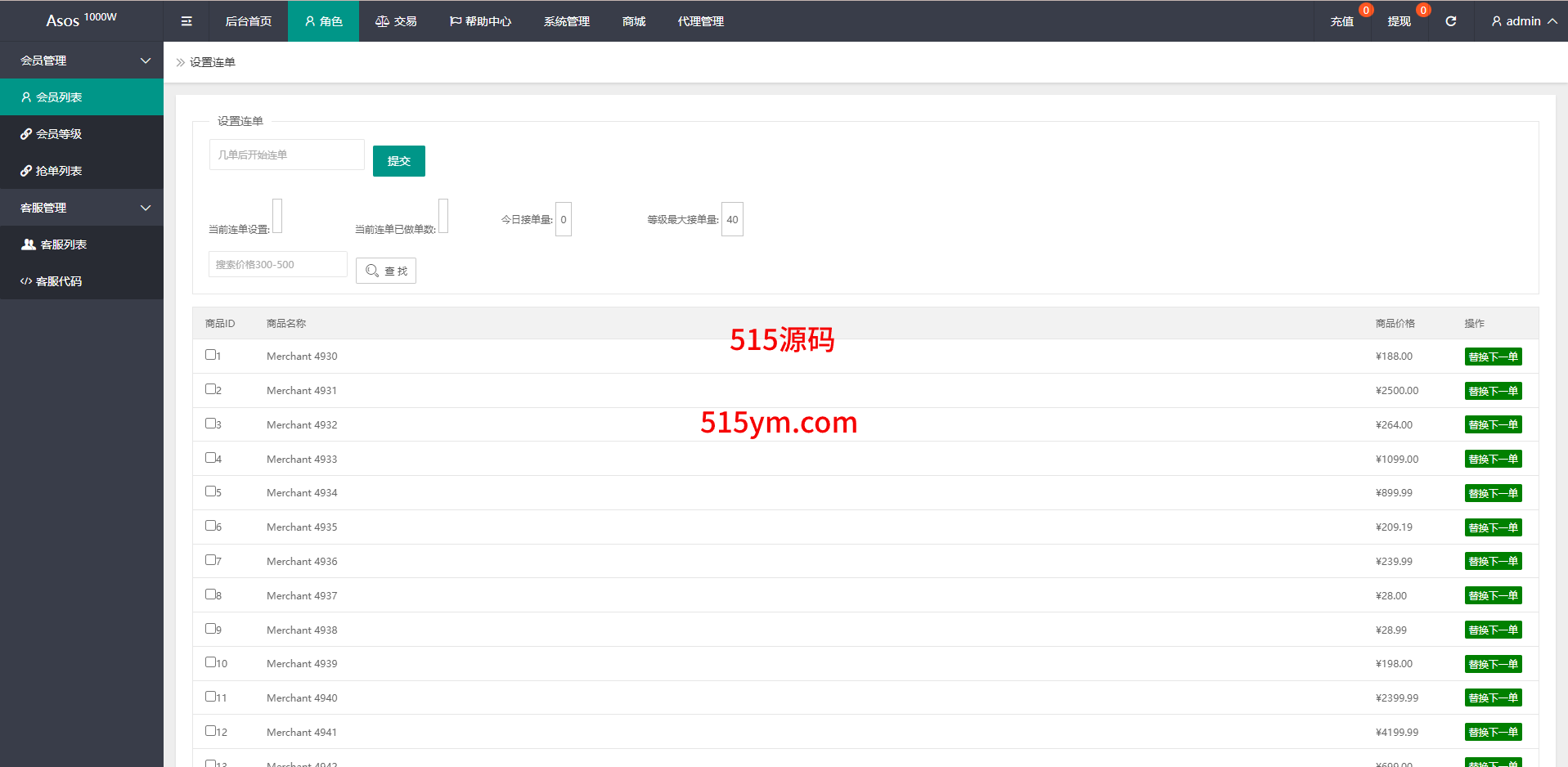 定制版前端UI,系统支持连单、重置抢单、暗扣等功能