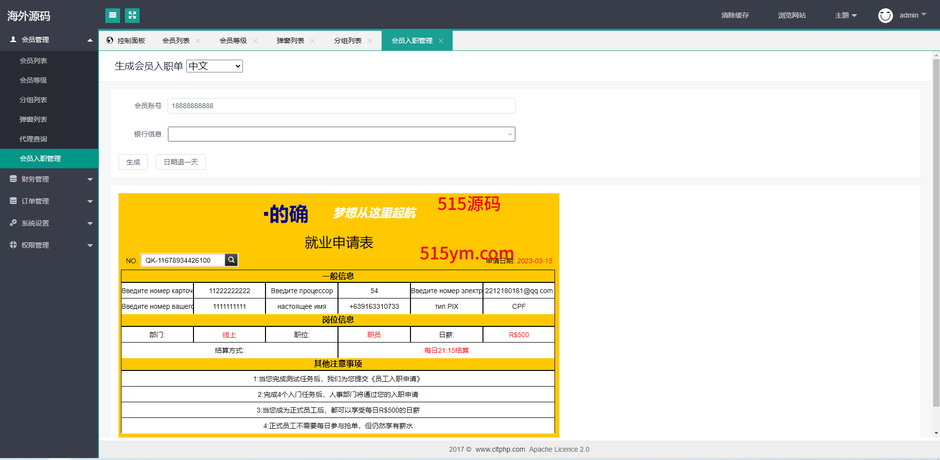此套是别人二开的海外抢单系统,系统支持分组联单控制、入职生成、订单编辑续期解冻等功能