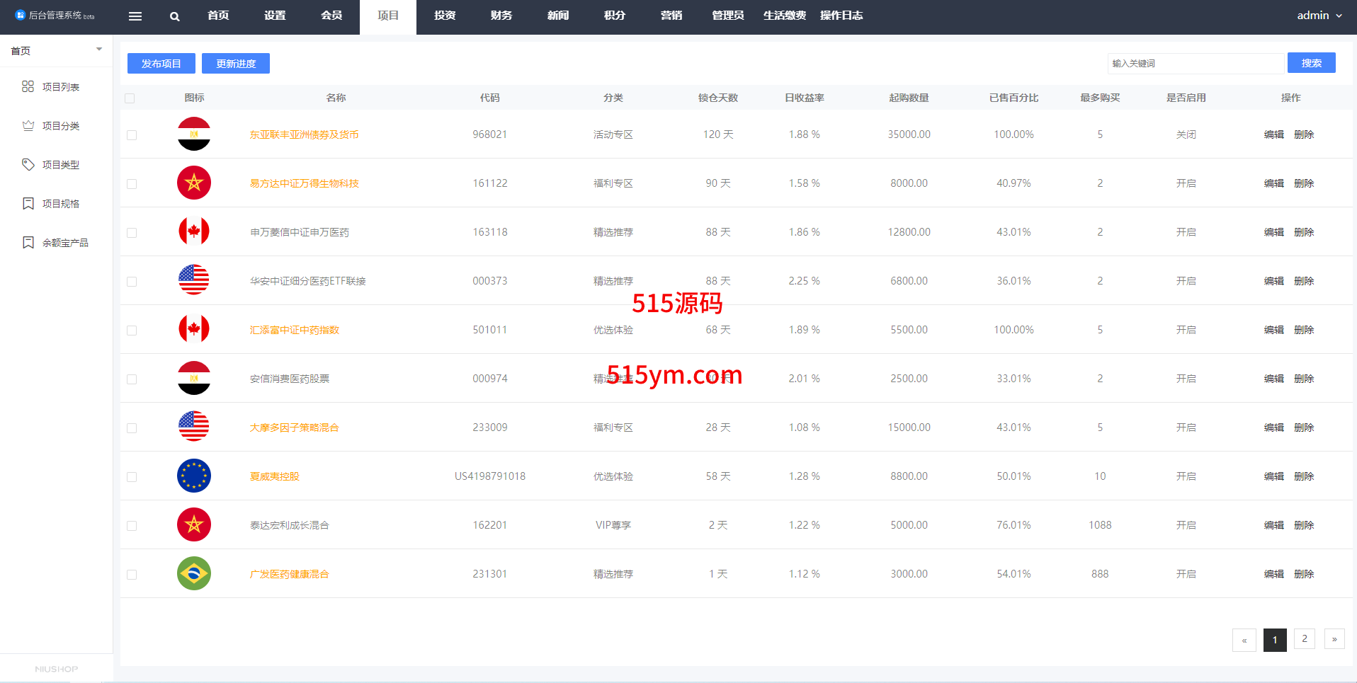 算是一套比较不错的下项目投资系统,系统是thinkPHP框架前端html的