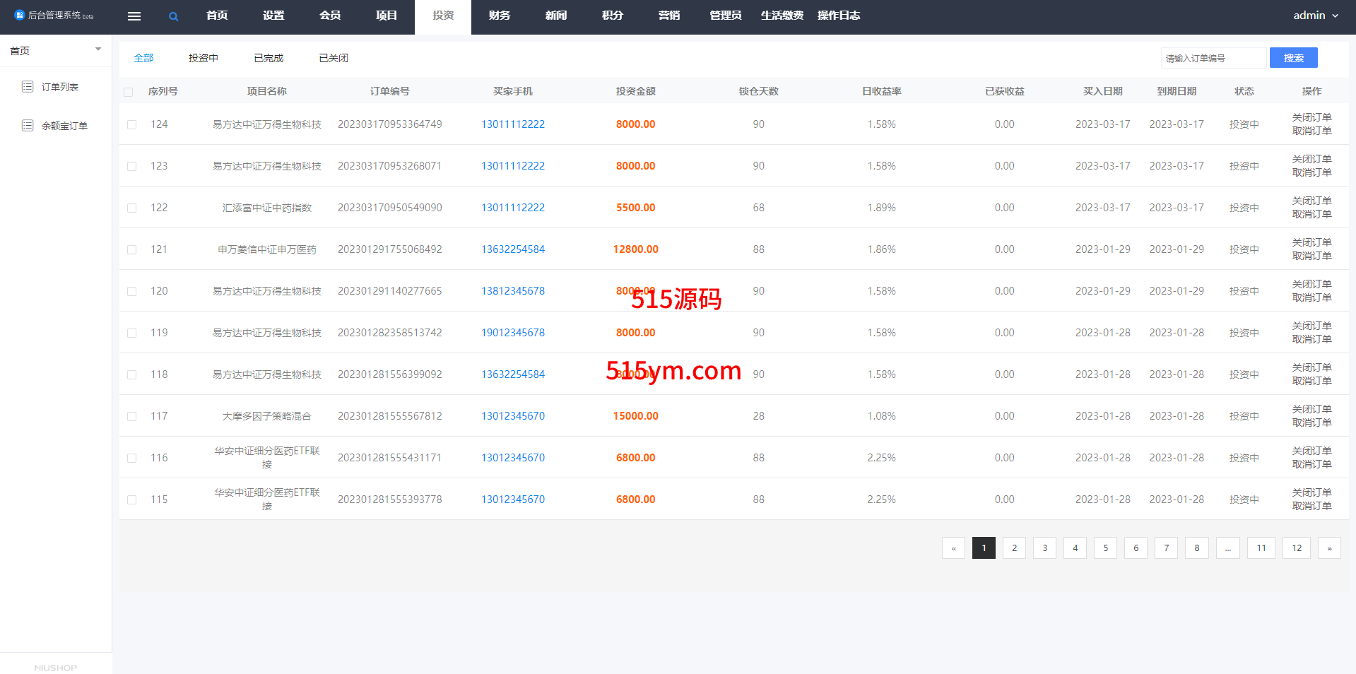 系统适用行业:项目投资、影视投资、理财投资、充电宝项目、外汇、基金、国际大宗商品、USDT货币投资等。