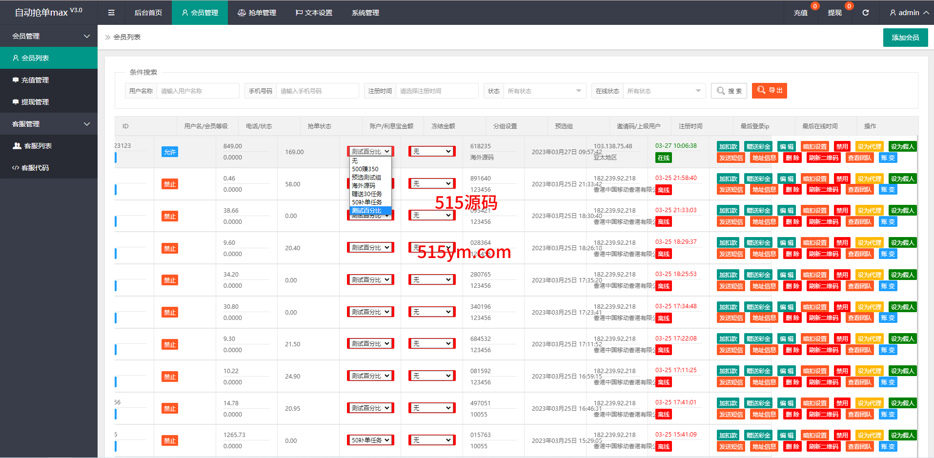 系统支持完整的分组杀功能