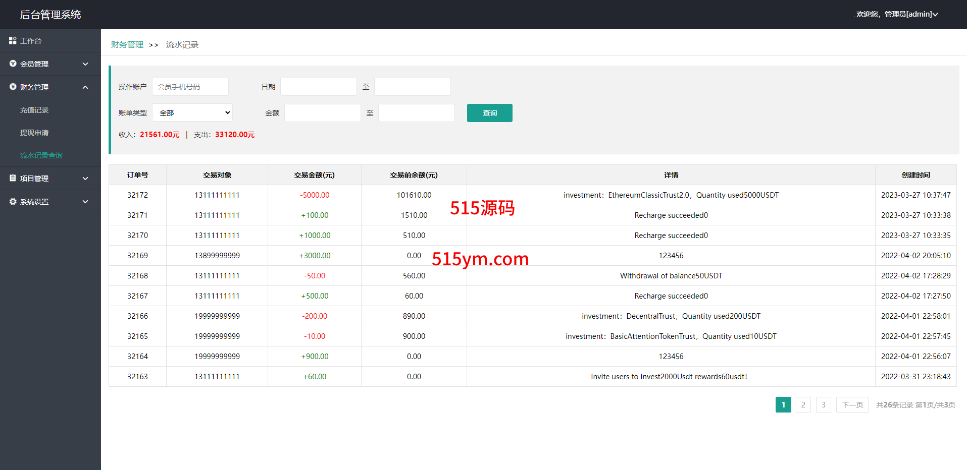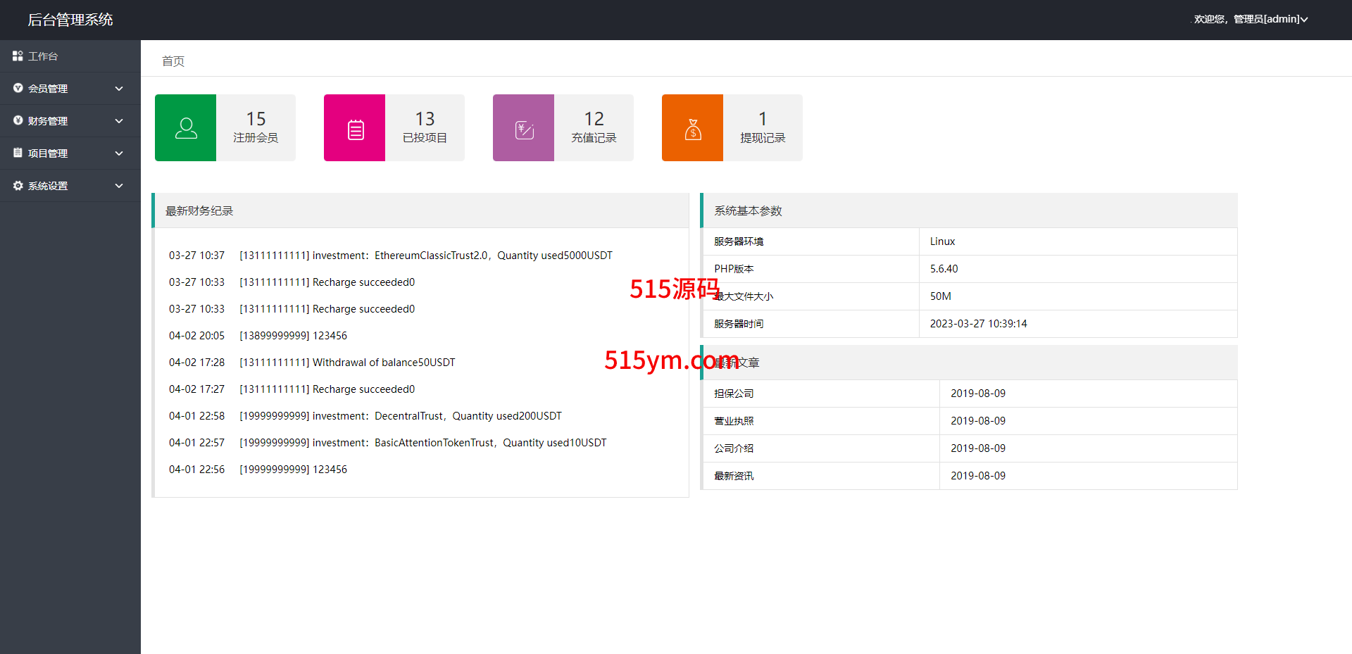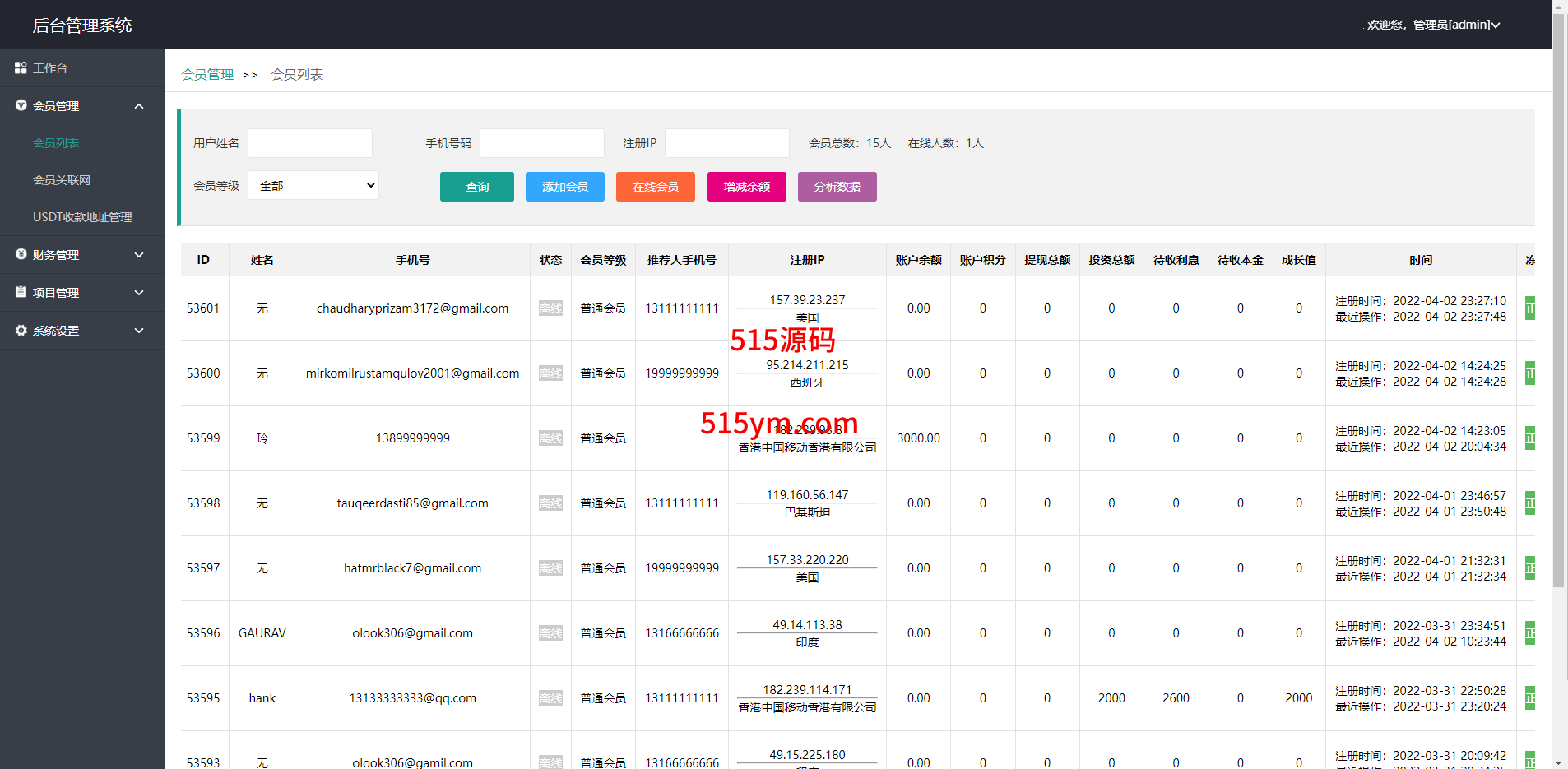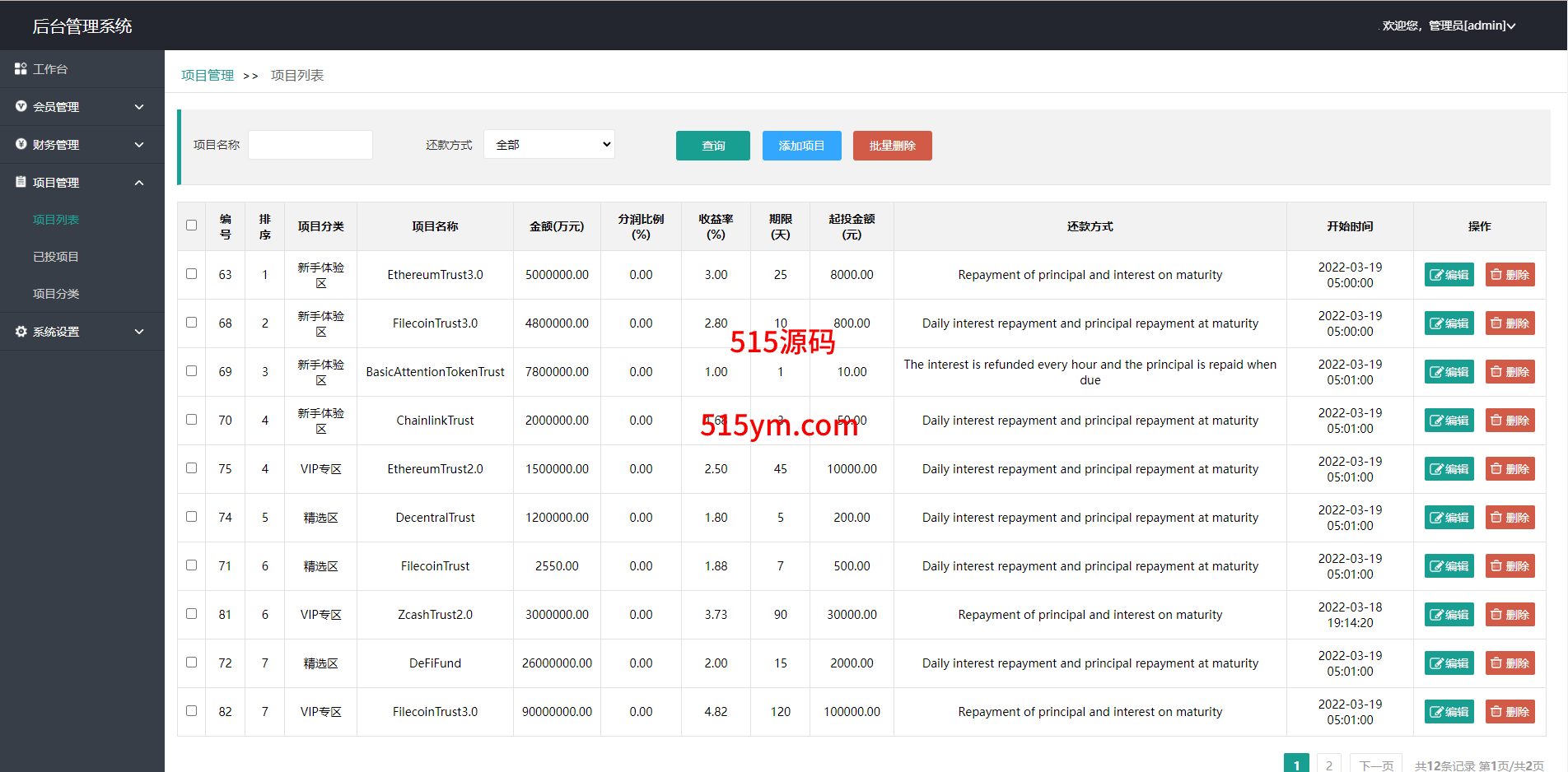 此套是以前客户运营下来的海外投资系统,前端产品可更改
