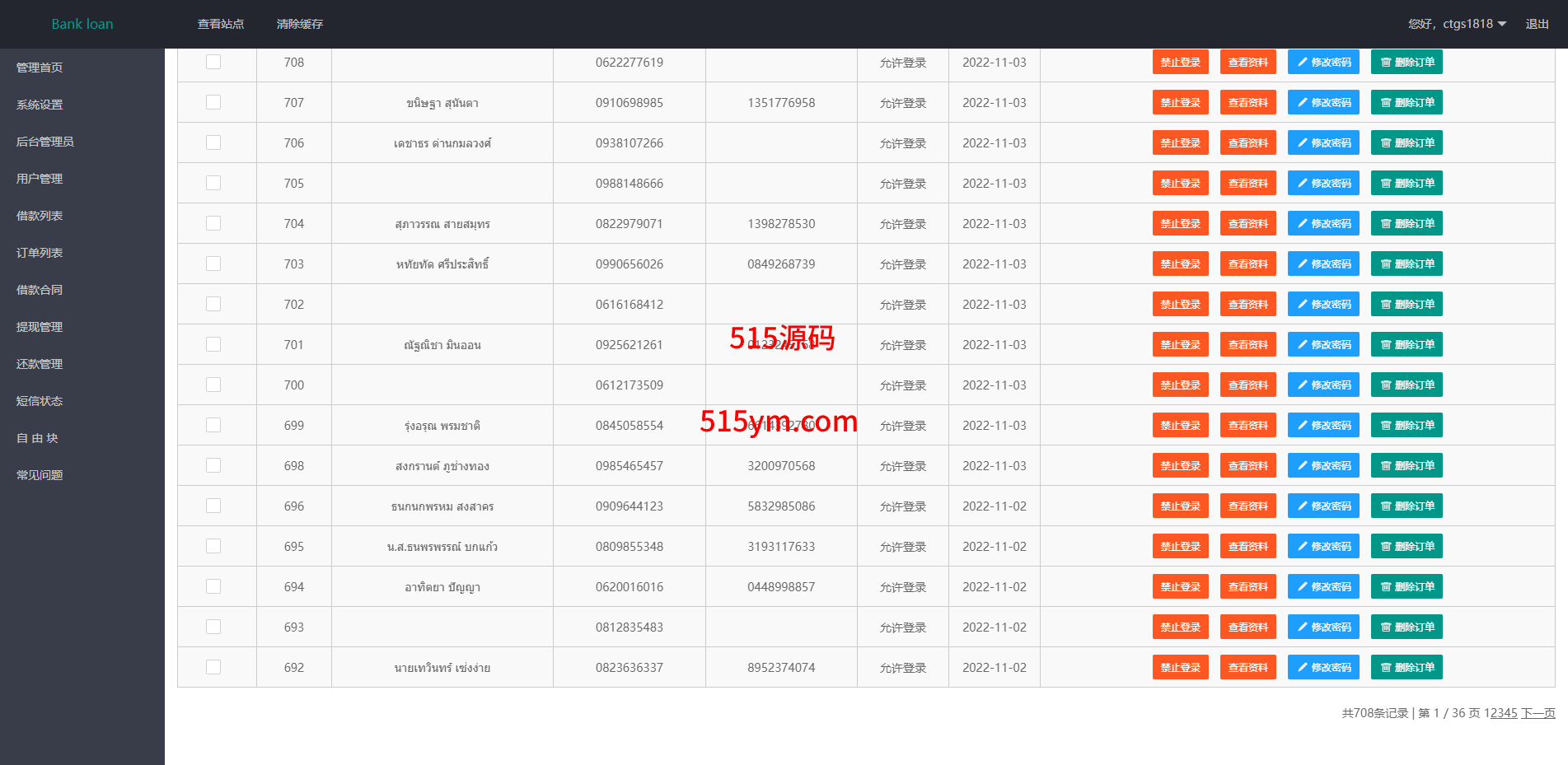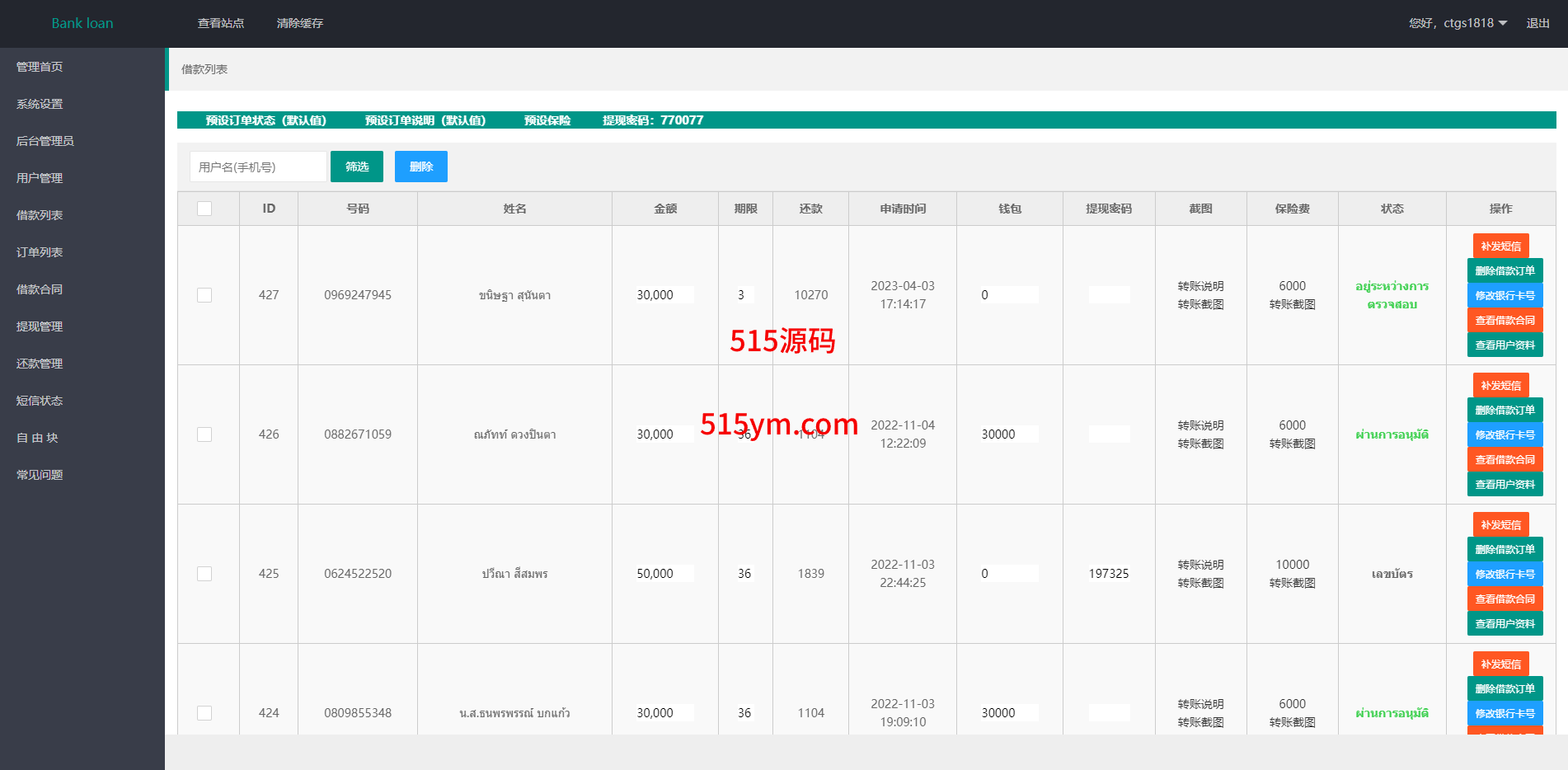 此套是系统别人专门二开的泰国小额贷款系统,系统正常运营