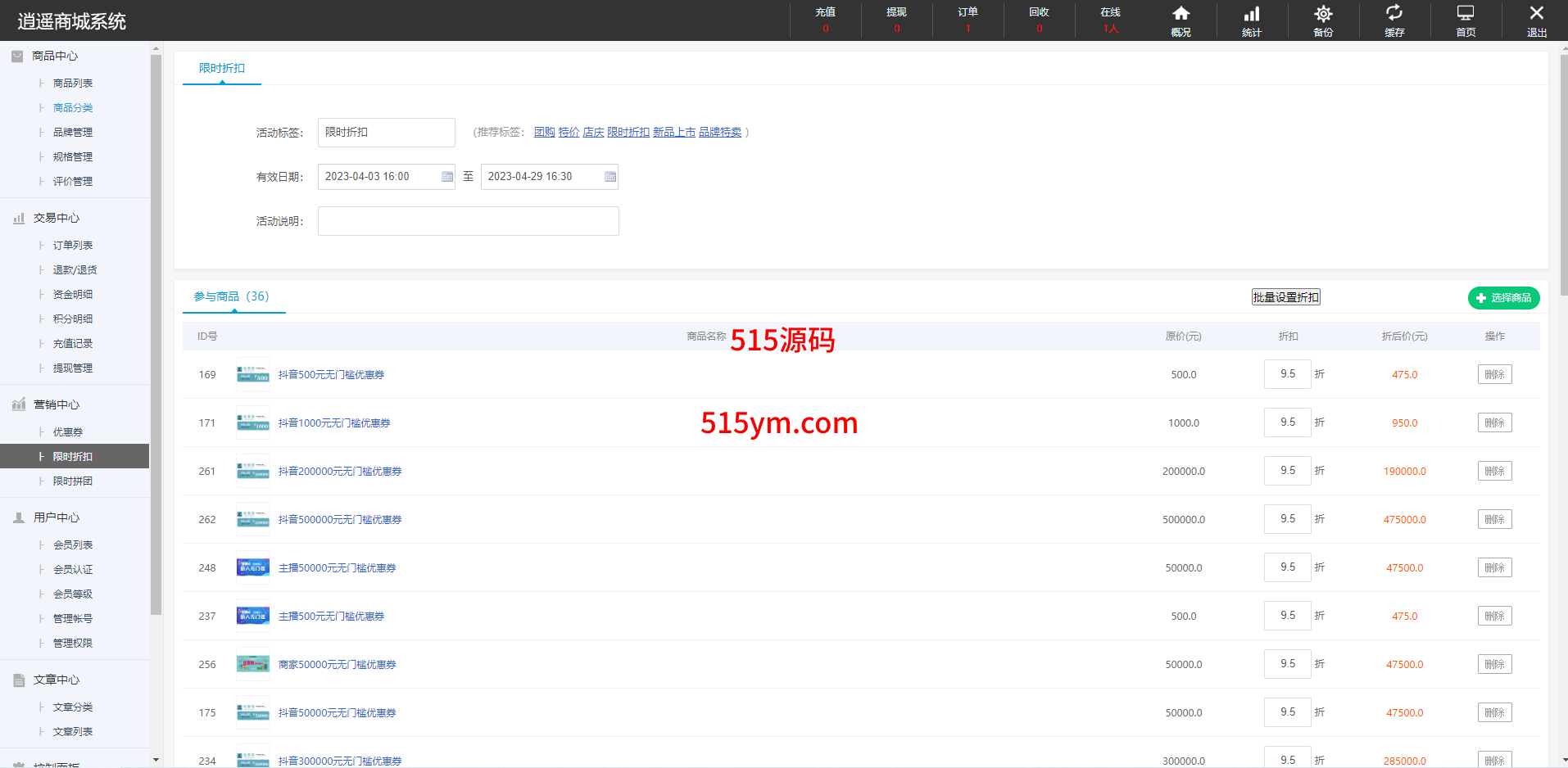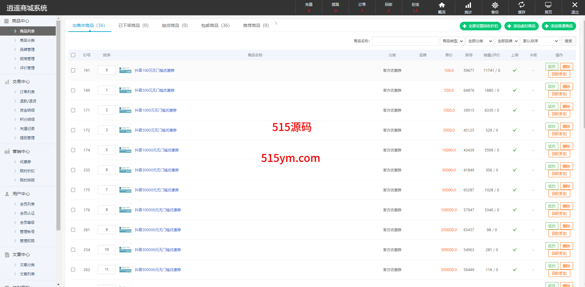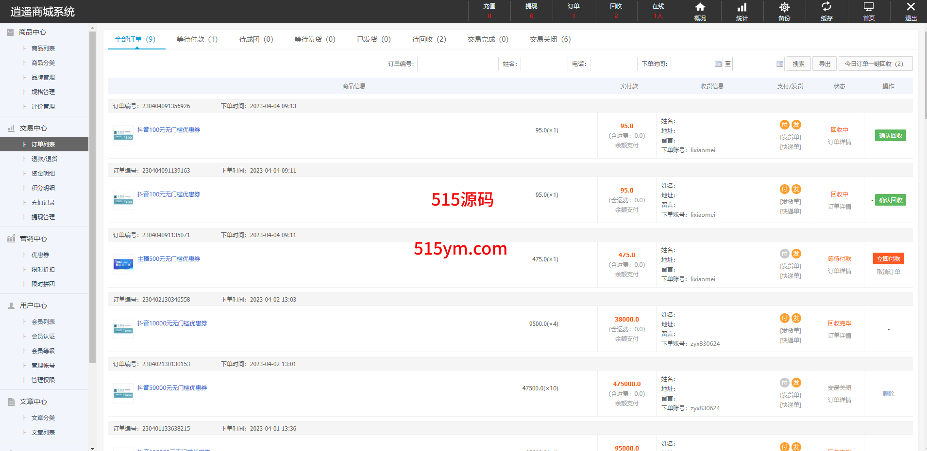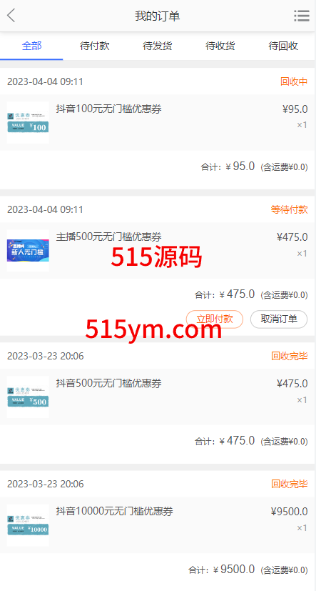 用户前端下单,后台订单可以直接回收,后台支持设置默认邀请码和抢卷时间限制