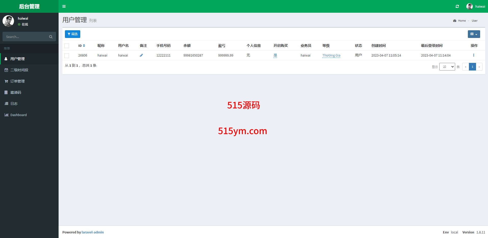 系统采用Larave框架,带权限代理后台,可单独生成邀请码,后台可设置购买权限、返现时间、持续购买