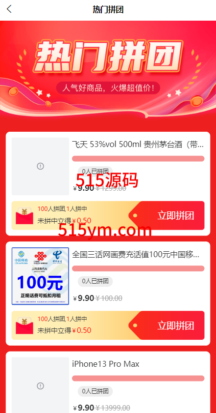 多人拼团,部分人获得得商品,没获得商品的人退款并瓜分红包,红包佣金从获得商品的人的订单利润里返。