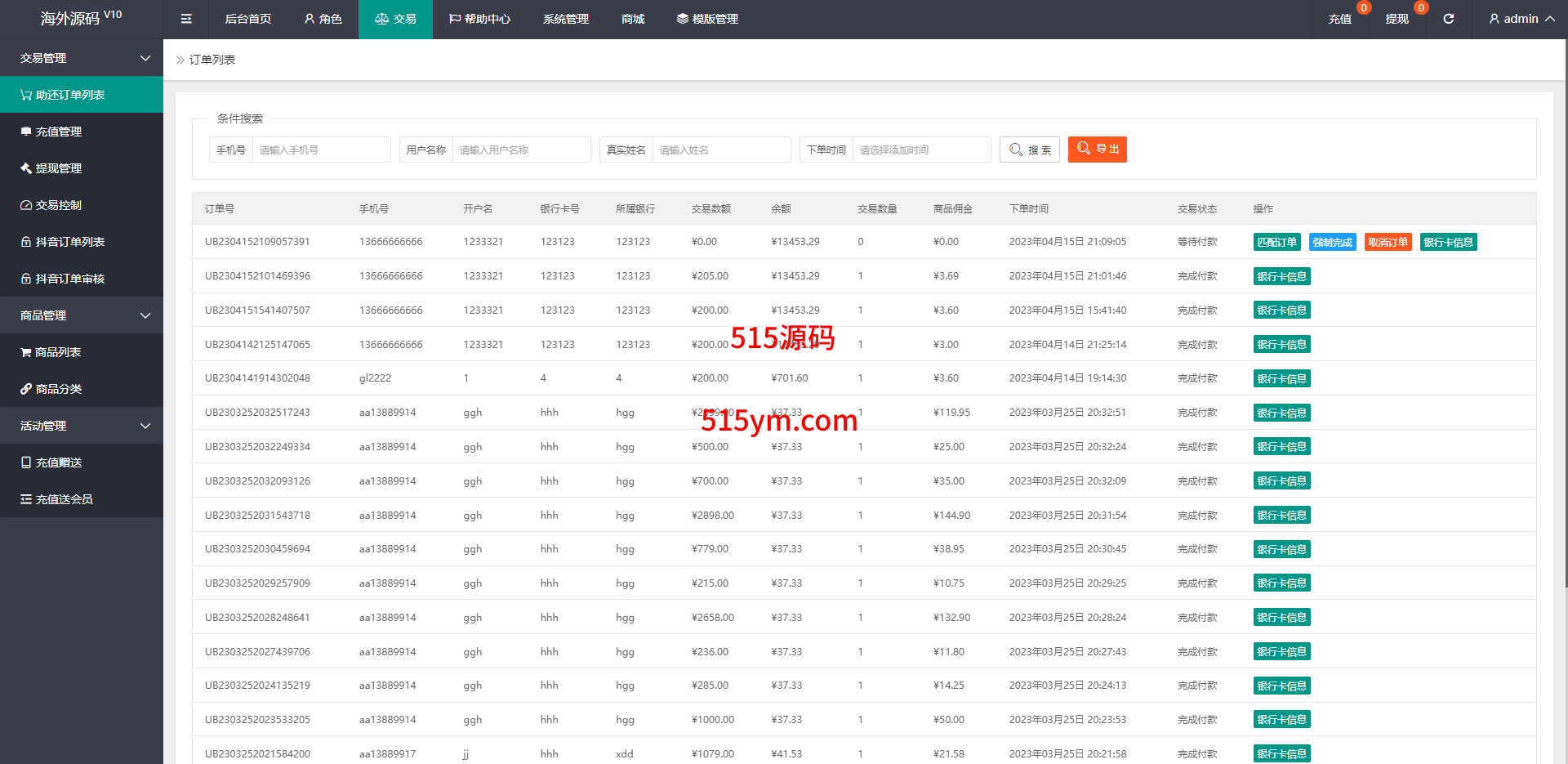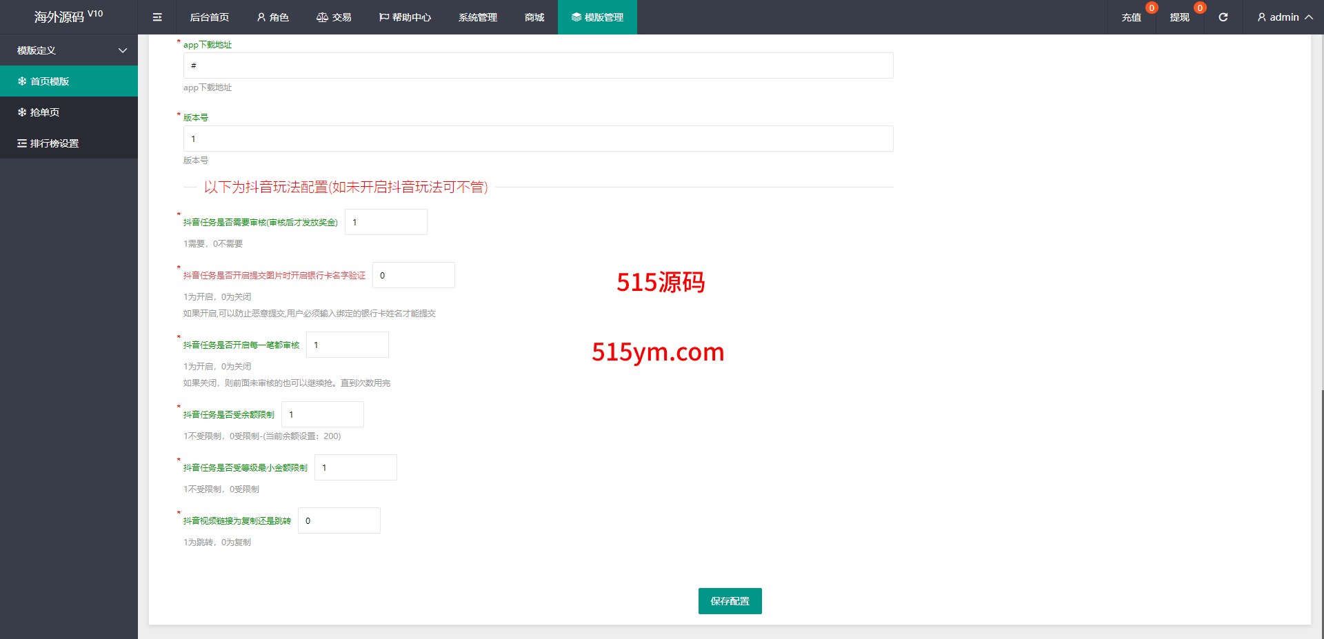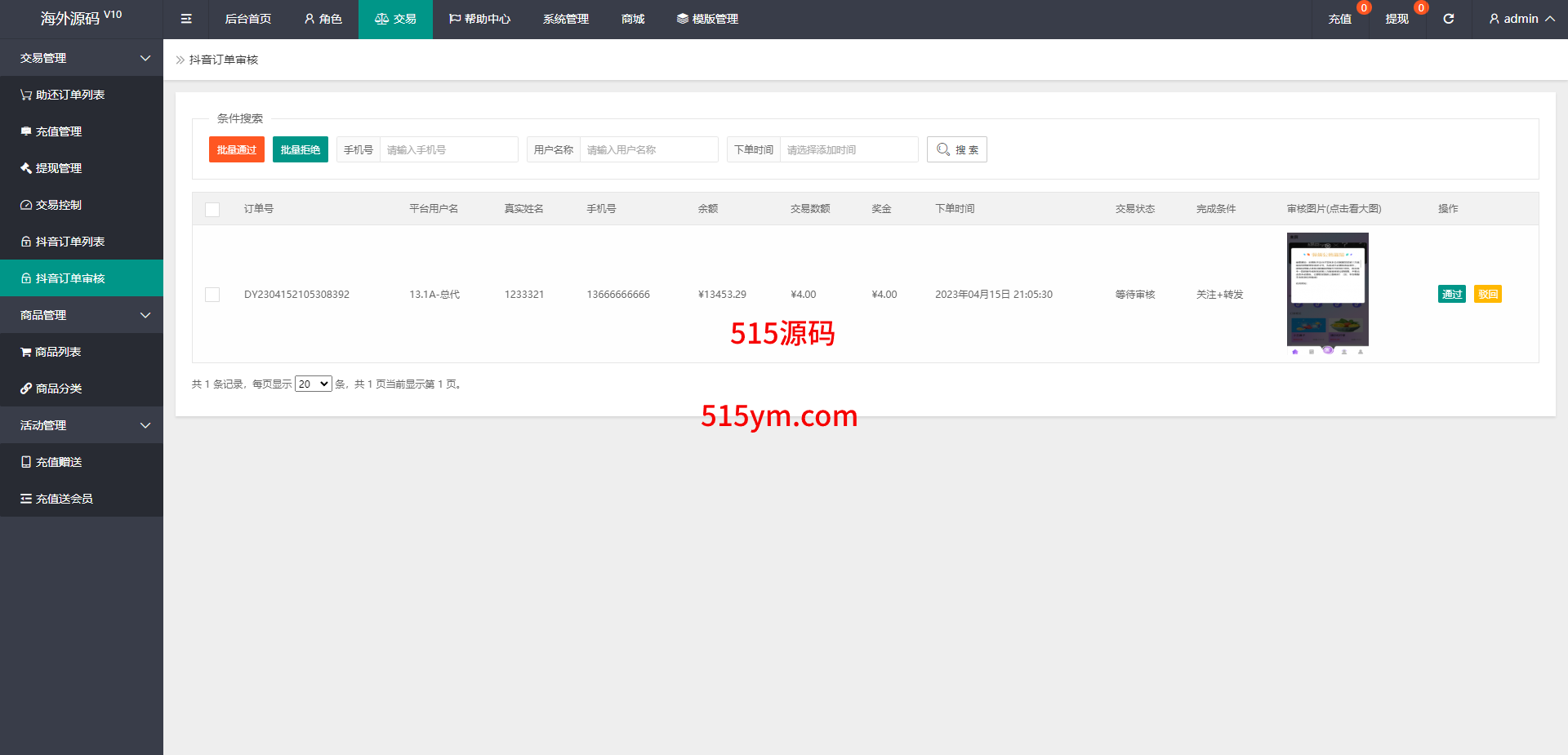 手动刷单后台可设置用户订单金额等,新增了抖音玩法前端提交后台审核,系统新增多个功能