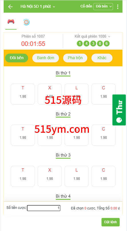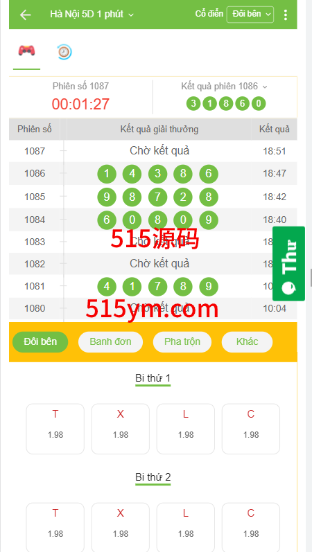 此套是纯越南的彩票cp系统,系统默认只有俩个一分钟彩种,但是前端添加了多个名称游戏