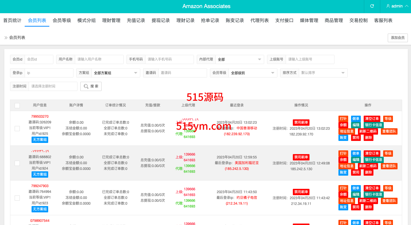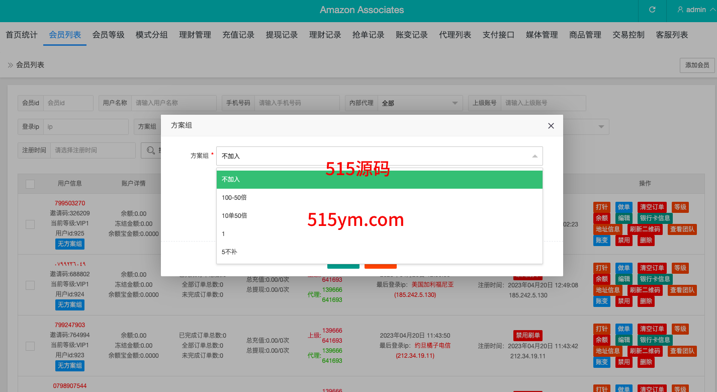 后端thinkphp框架,系统支持叠加组,打针,余额宝等功能。usdt充值,权限代理后台