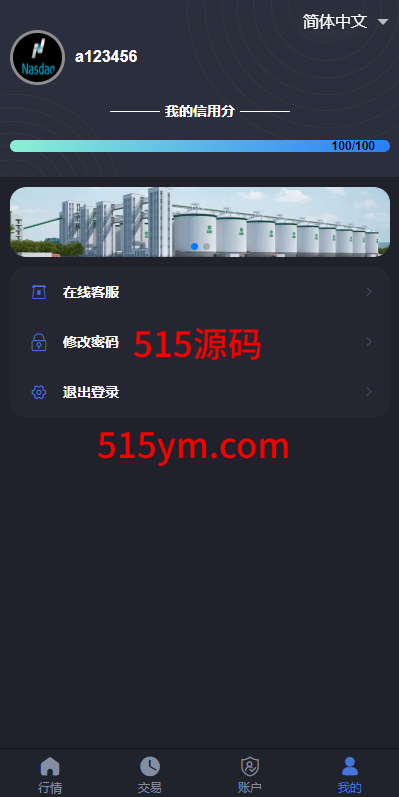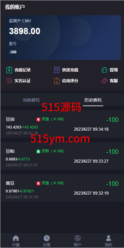 前端功能简洁,K线UI优美,用户信用分后台可更改