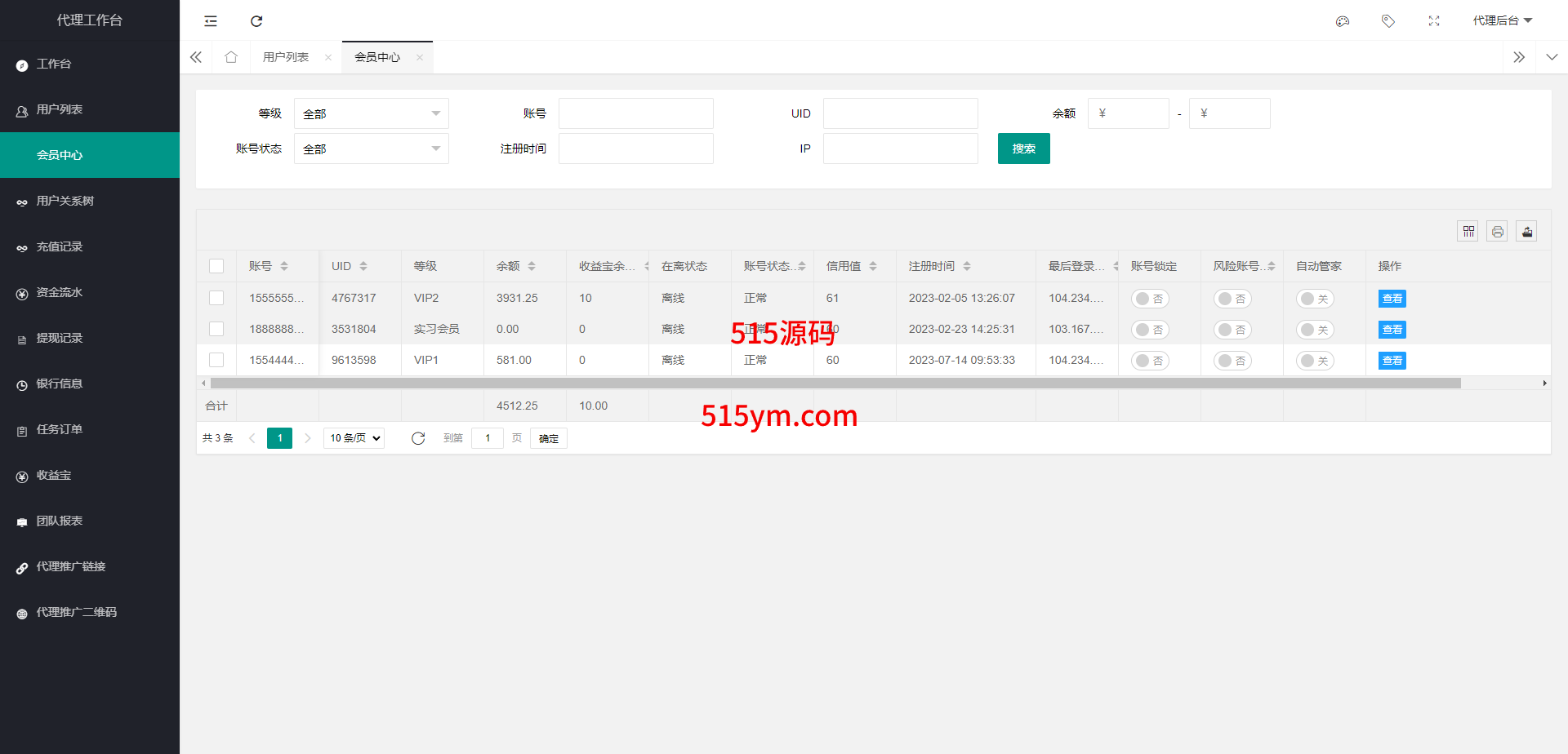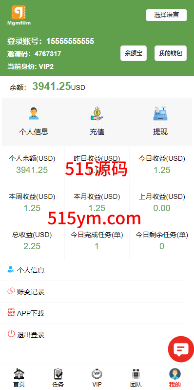 ④、会员得到佣金后自行提现