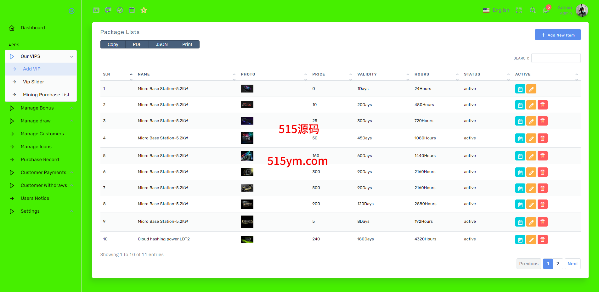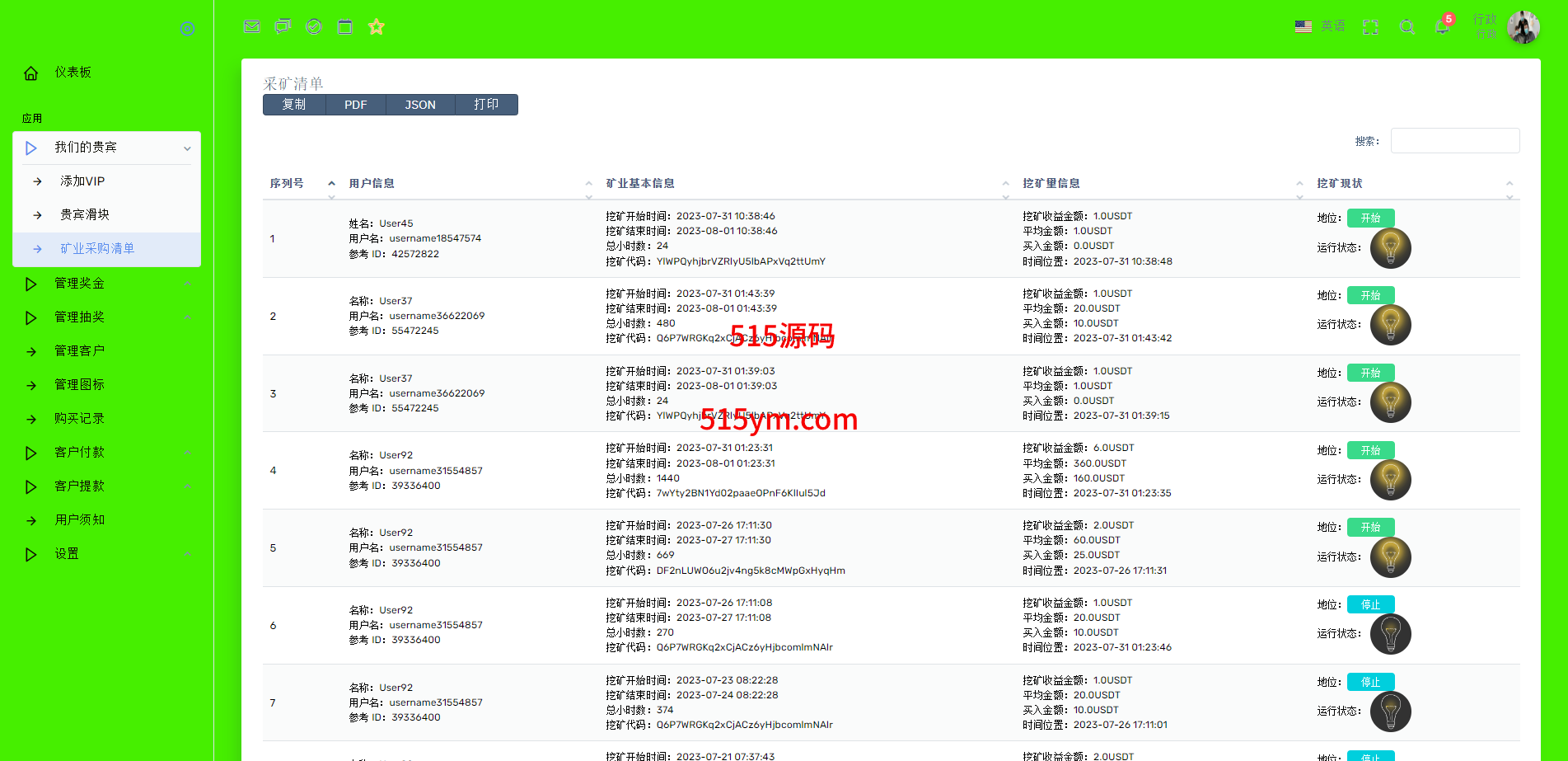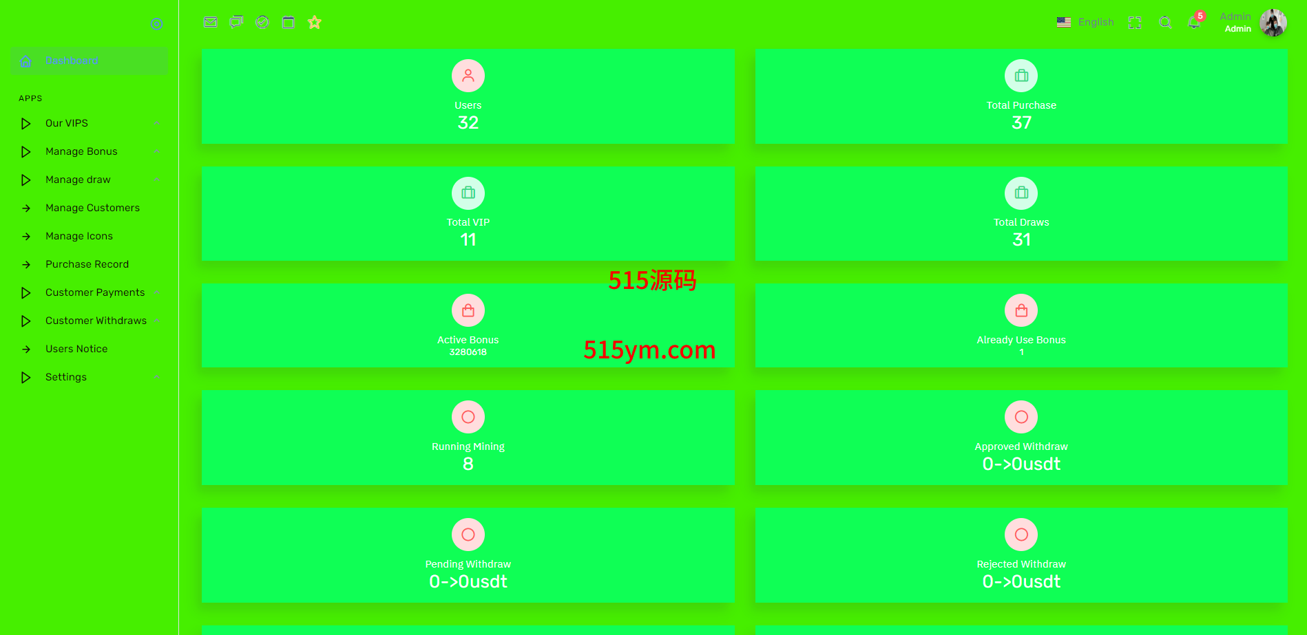 此套是纯海外版的矿机投资系统,前后台都是英文的