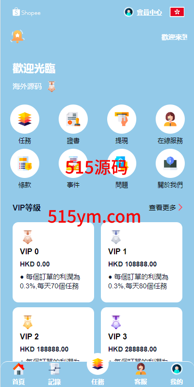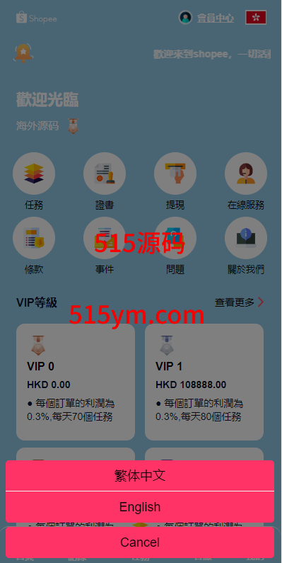 此套刷单前端UI全新设计,前端语言英语,繁体,可二开其他