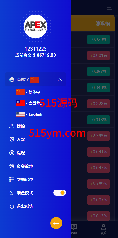 系统交易产品以外汇为主K线正常、提现限制、金额一键冻结等功能