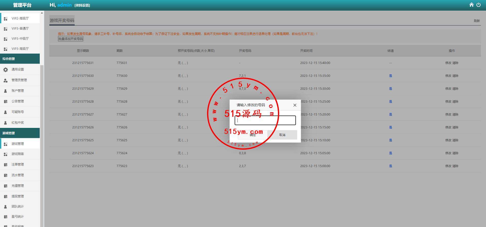 新增功能批量预设开奖号码,源码全开源