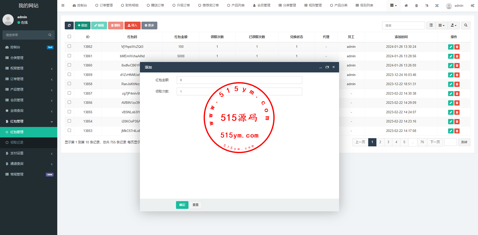 带红包赠送功能,系统功能满足基本需求,前端产品可以随意更改