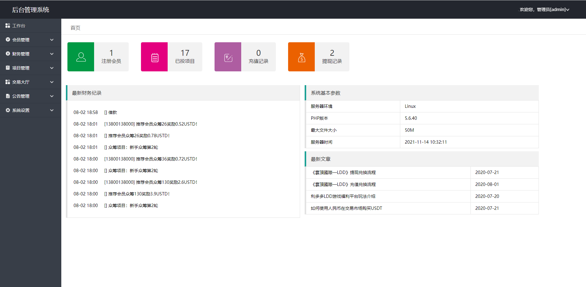 后台:每轮的静态,动态,极差,项目方每轮收益,节点池,幸运池(各构成板块明细清楚)