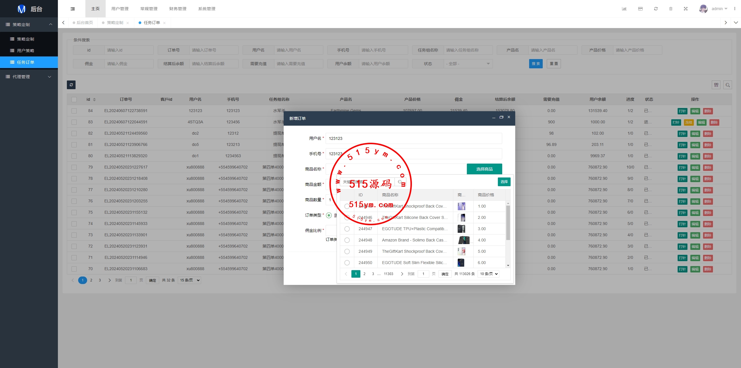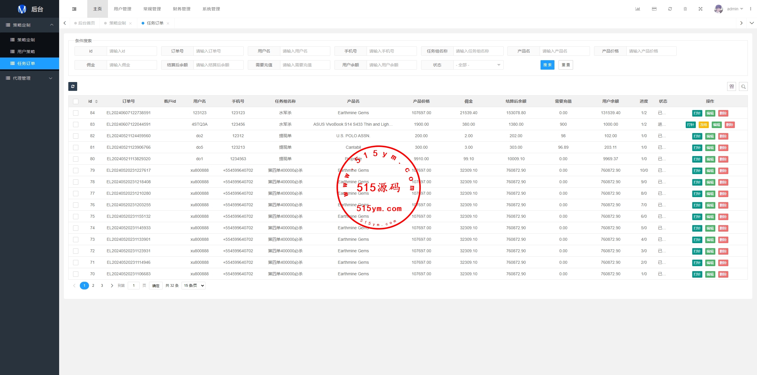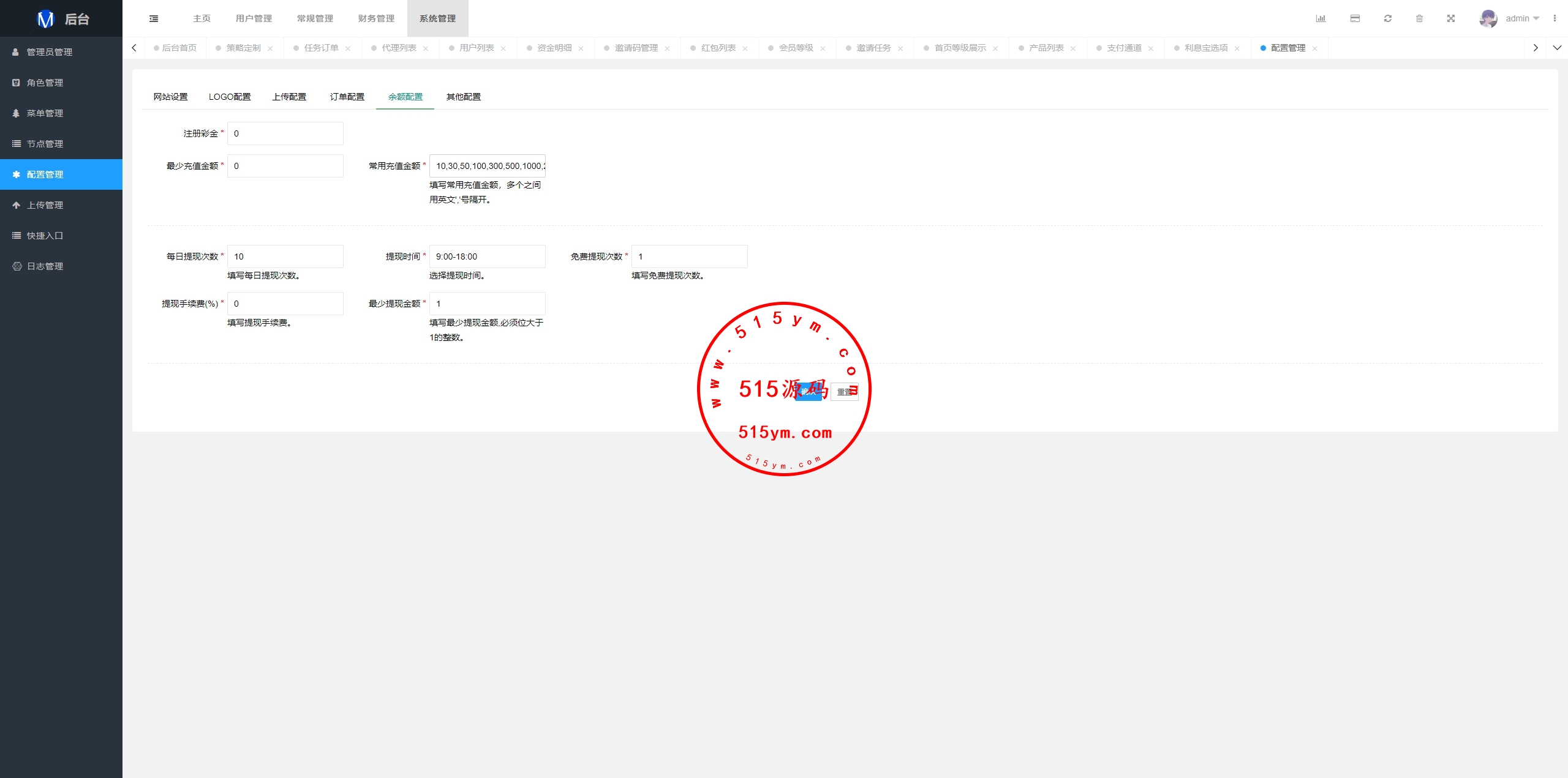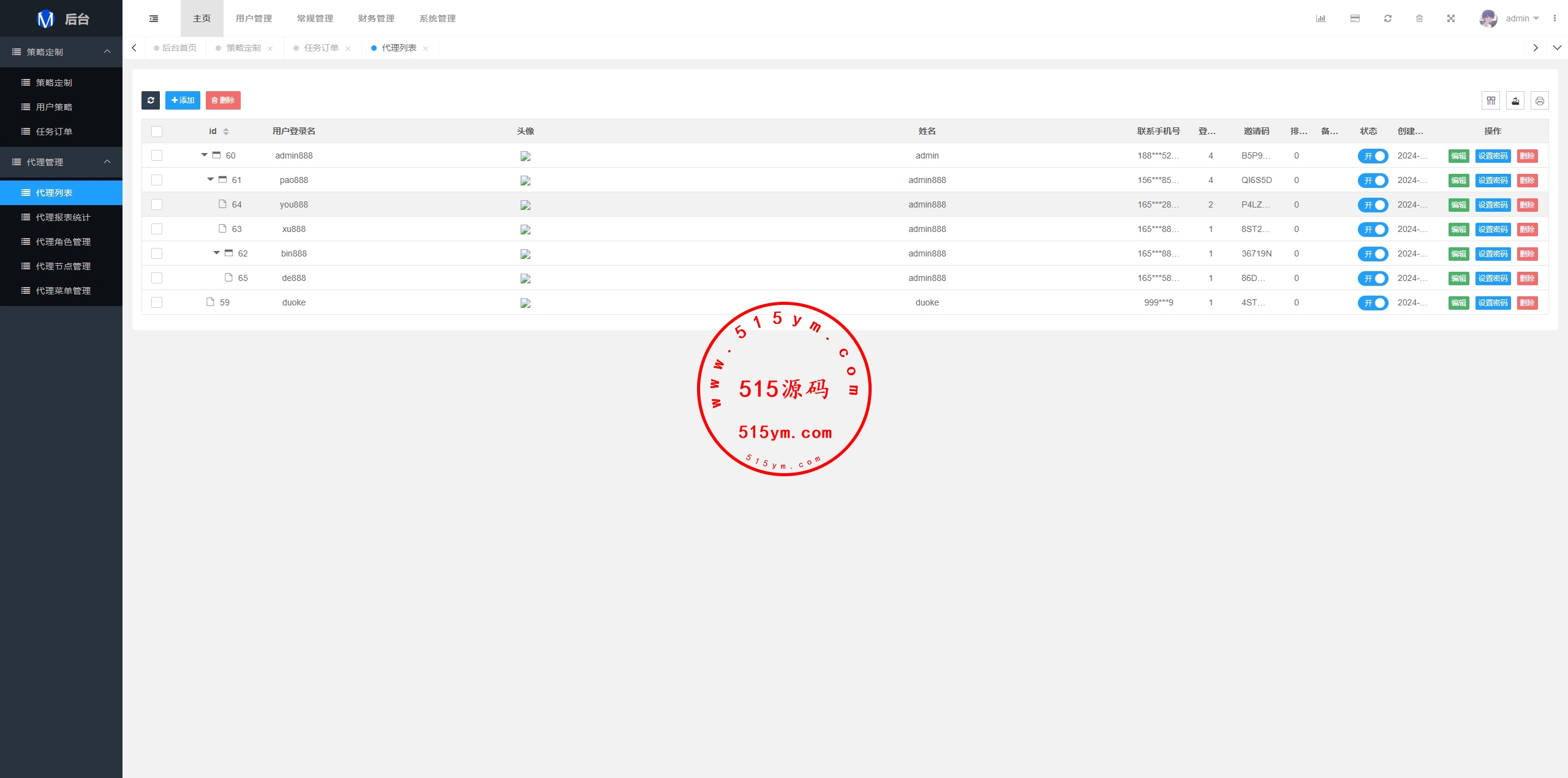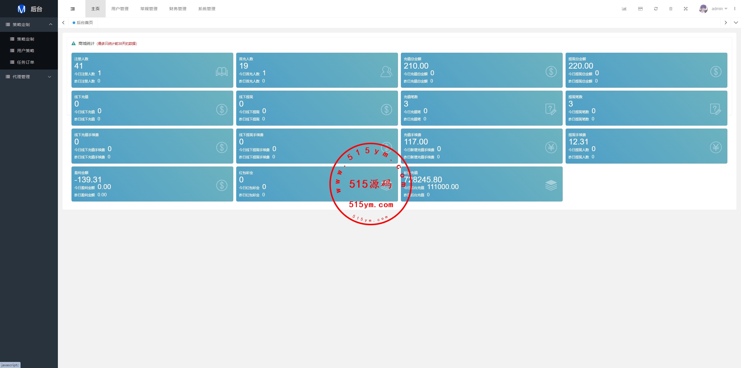 系统支持策略配置,后台共享代理后台独立,系统基本符合市场需求,单独的代理后台等功能