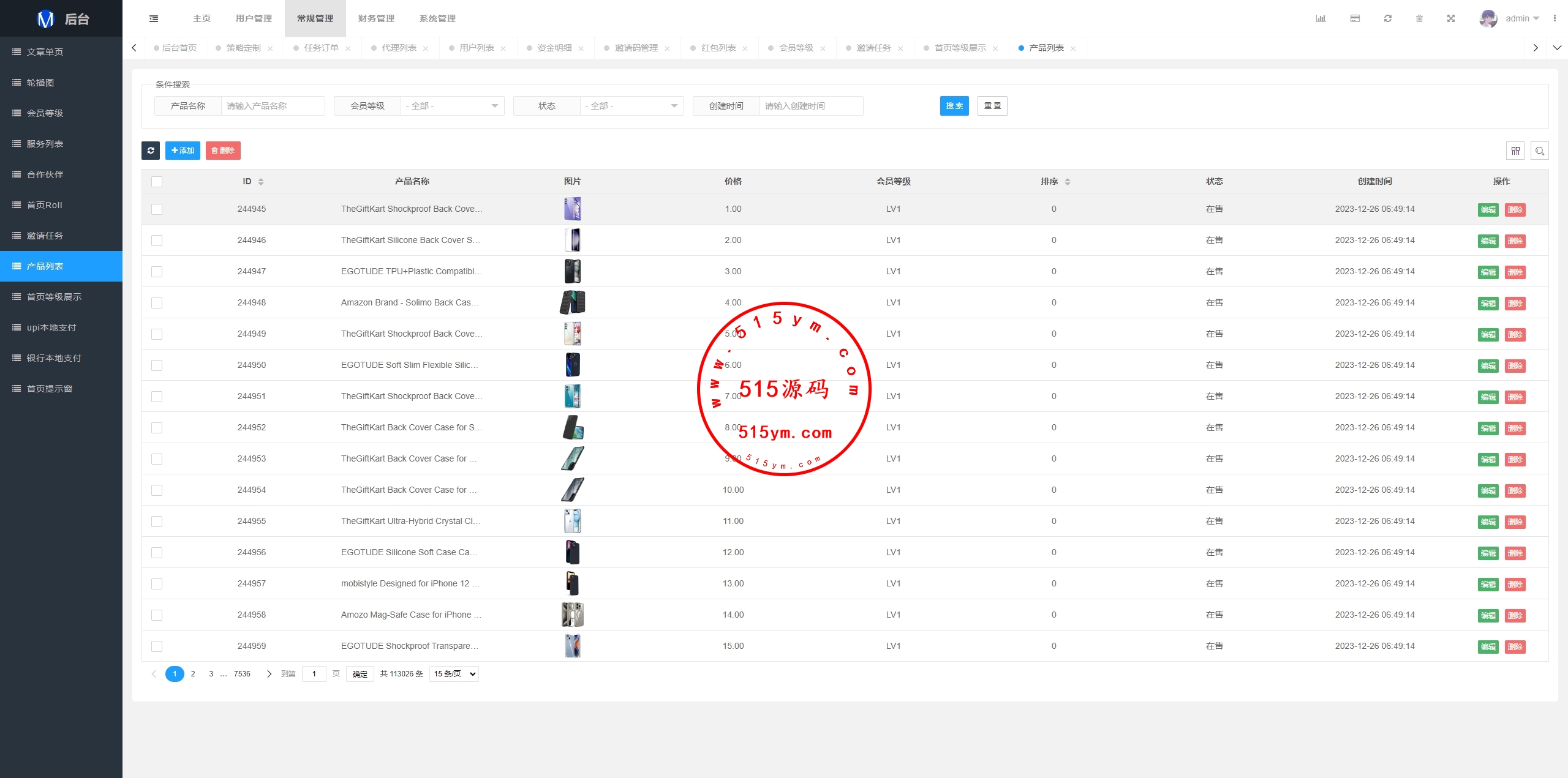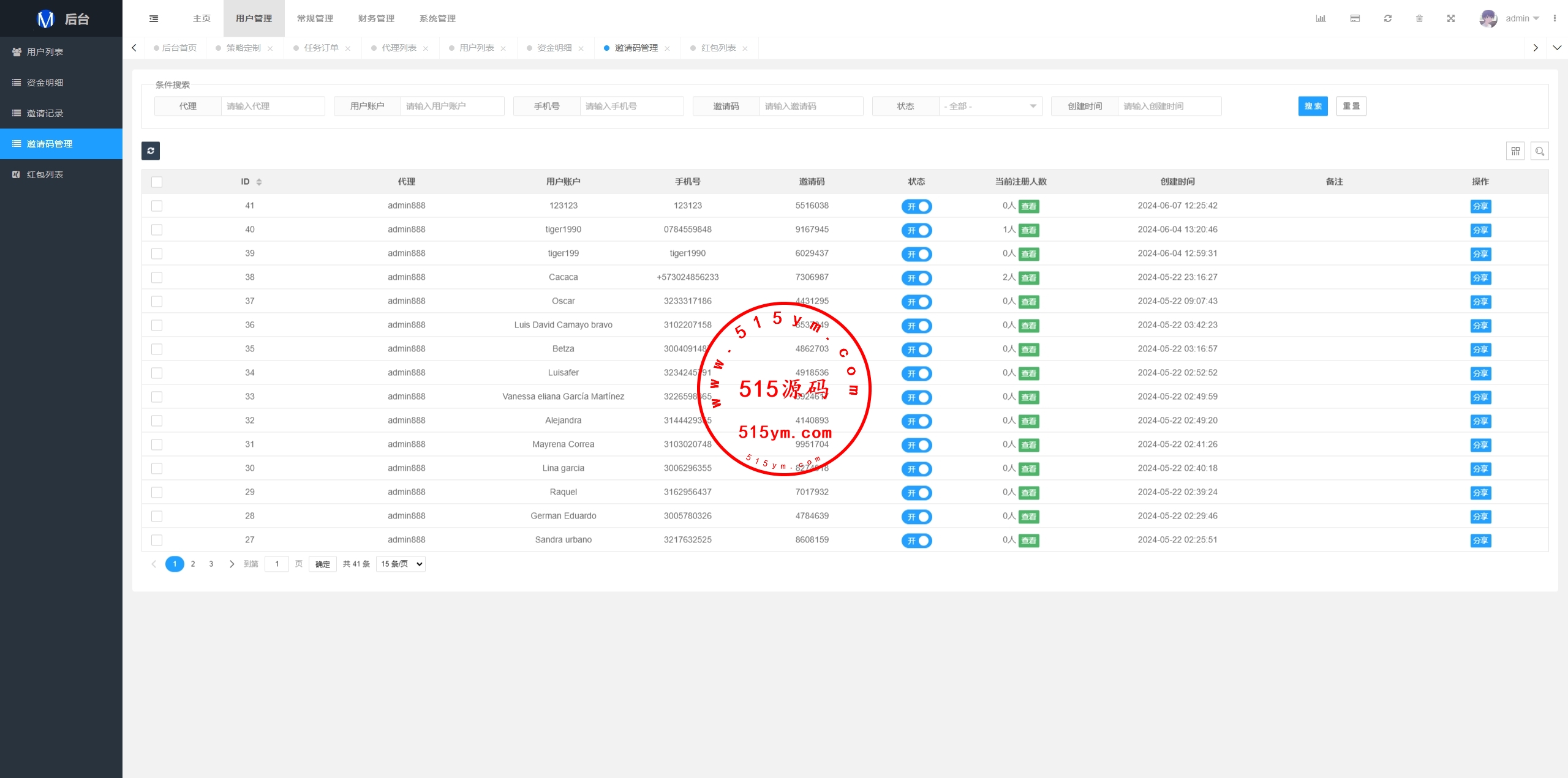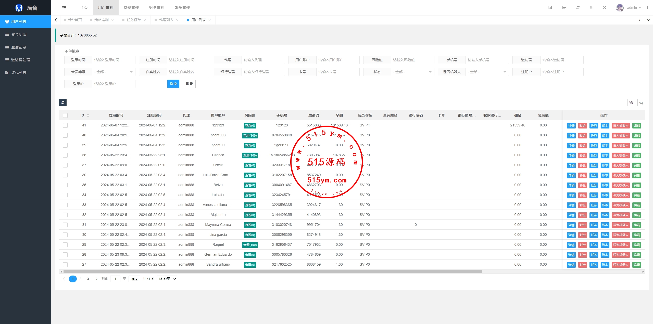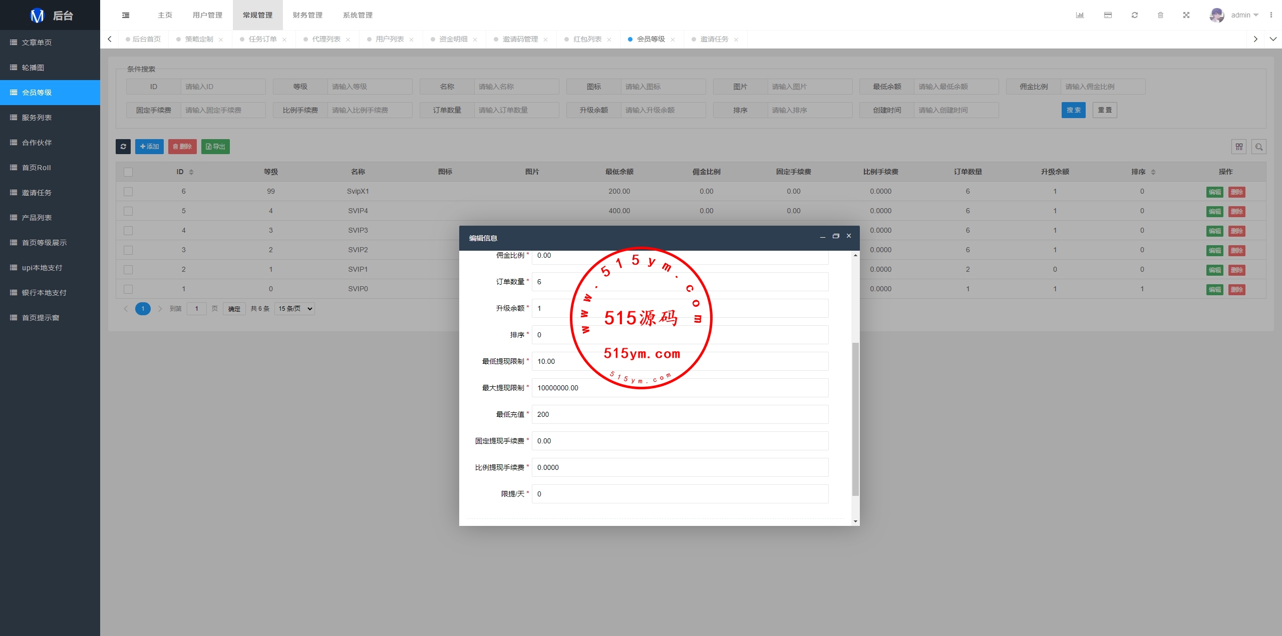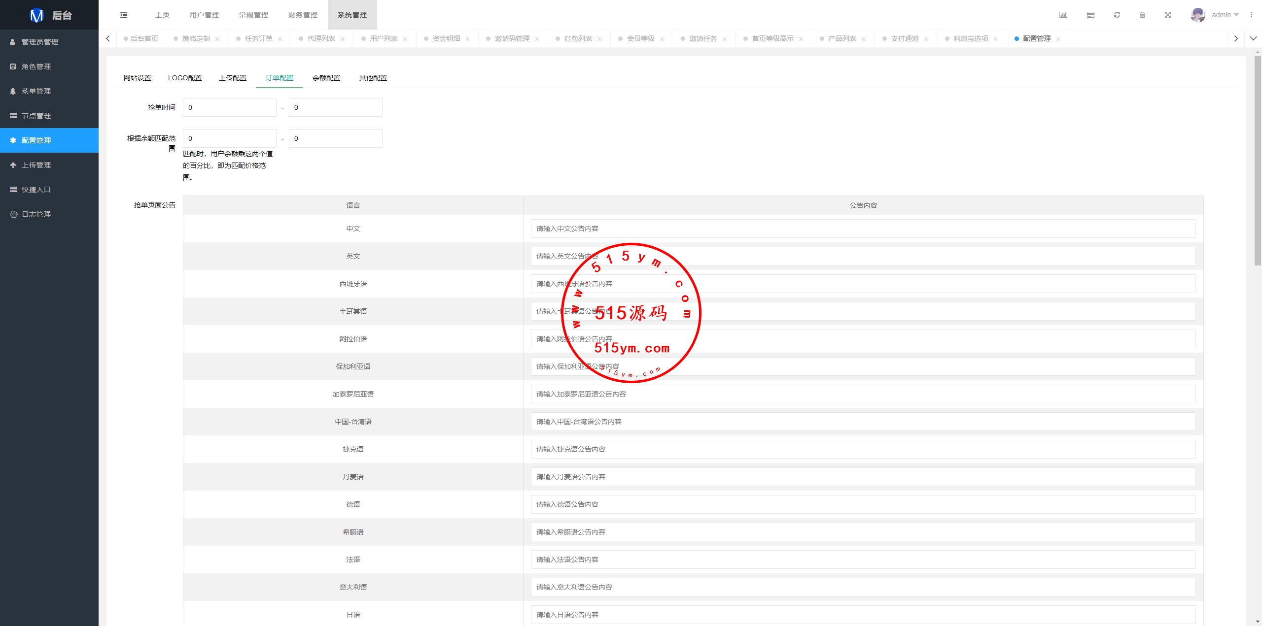 系统支持策略配置,后台共享代理后台独立,系统基本符合市场需求,单独的代理后台等功能