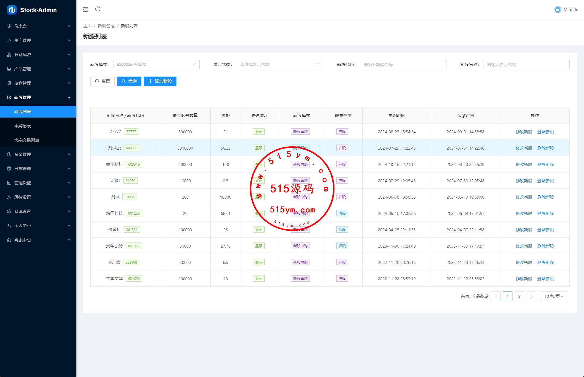 系统前端单a股交易、新股申购、大宗交易等功能前端、代理后台、总后台VUE开发,服务端java开发带纯源码跟教程