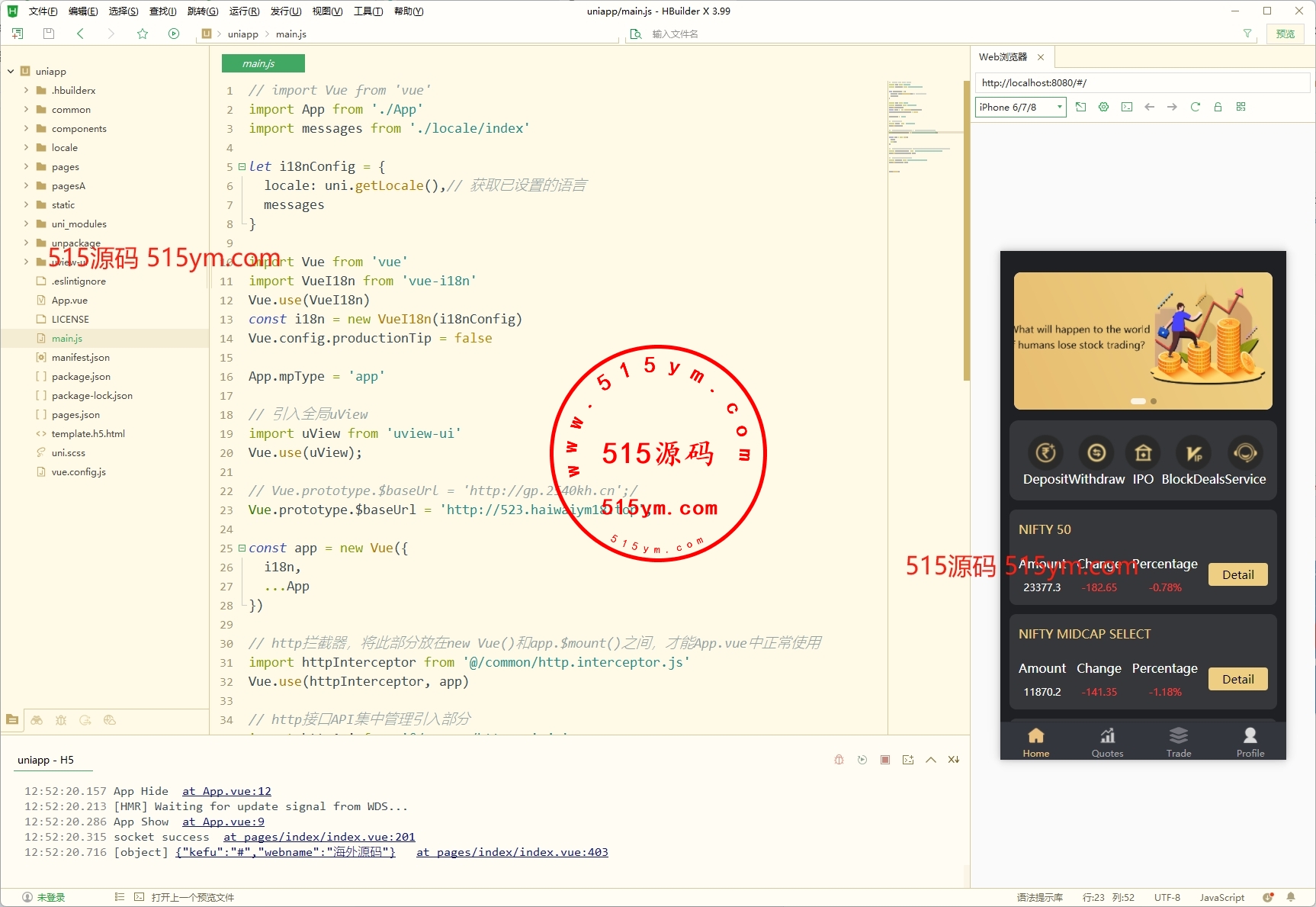 系统前端uniapp+后端fastadmin全开源带源码前端数据行情正常,抓包印度一个股票网站