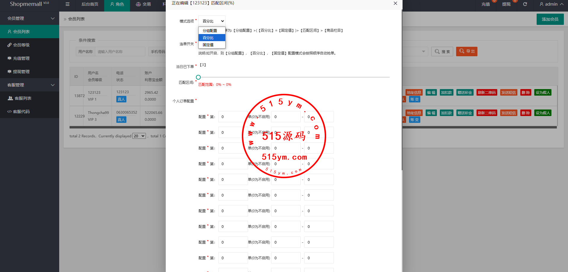 系统功能支持:支持分组、百分比、固定值、连单设置、充值彩金等功能