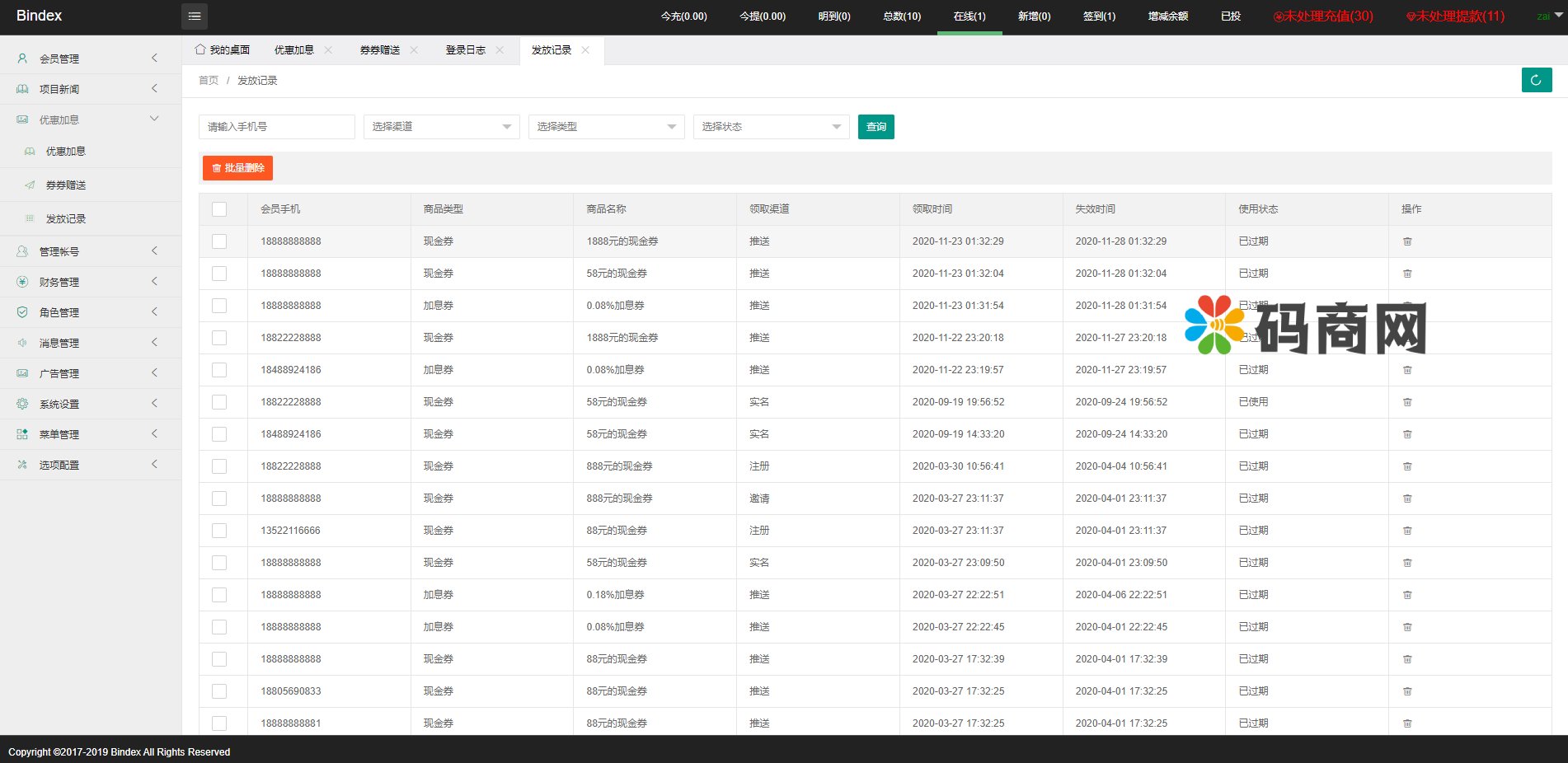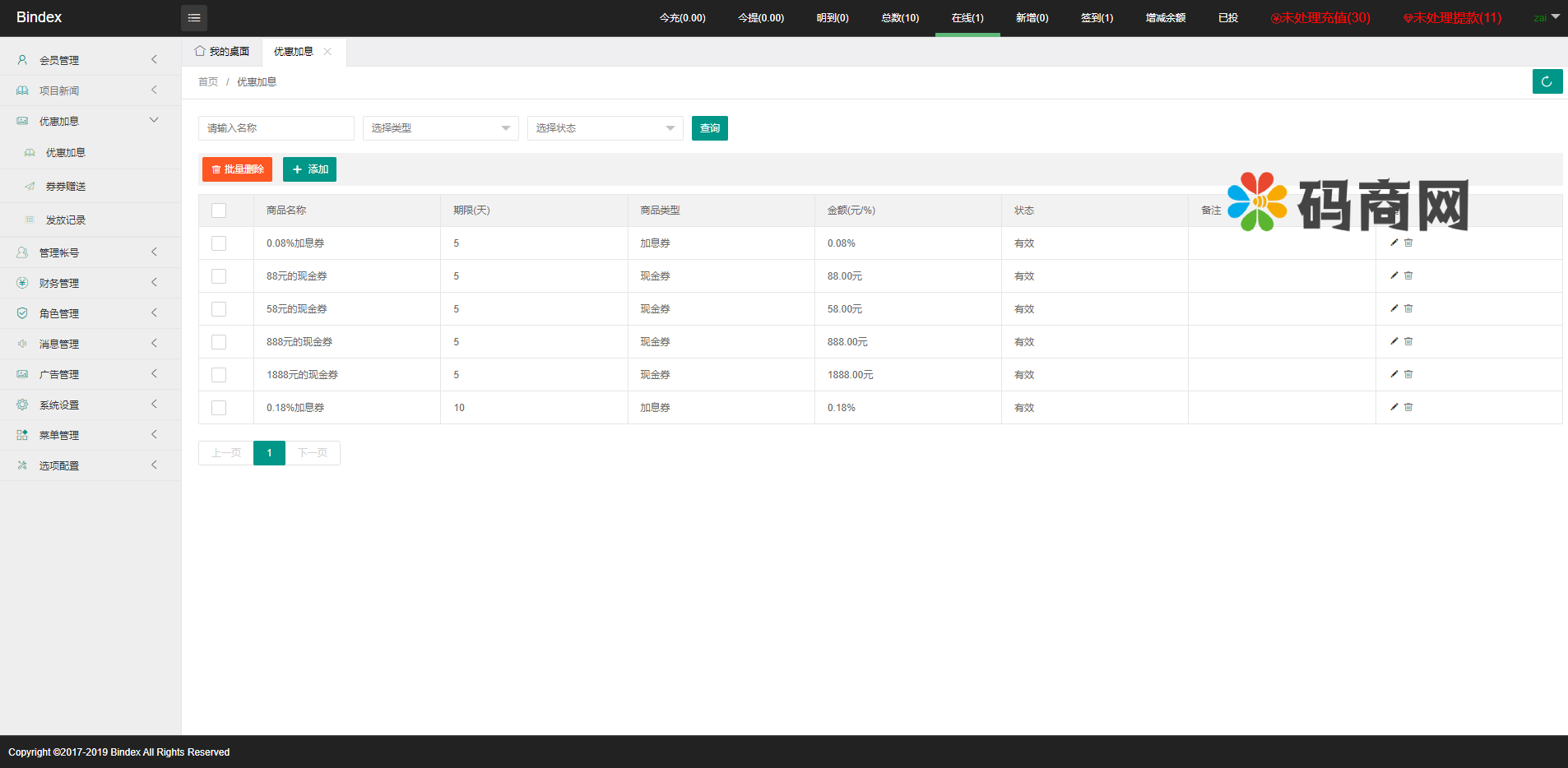 新功能:在线客服、在线会员、优惠加息、券券赠送、虚拟币充值等功能