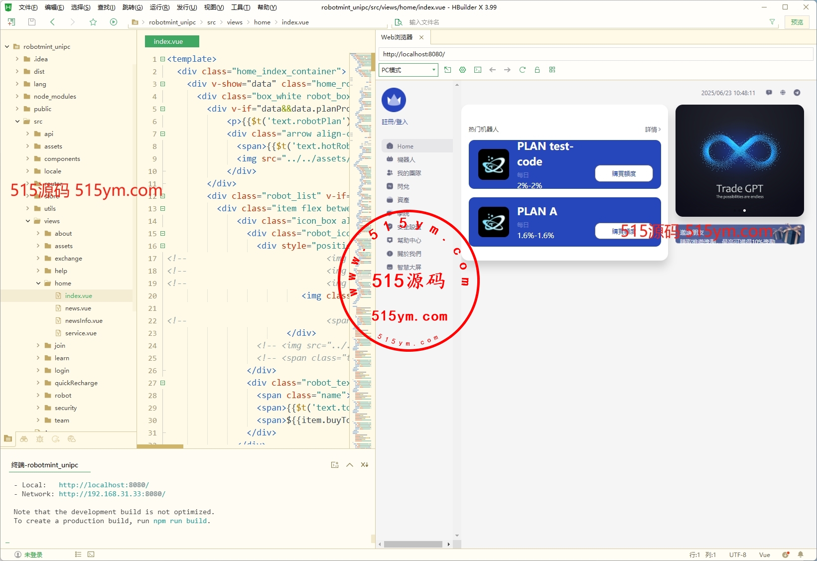 多端分离VUE开发,AI智能理财资金盘算力机器人投资复利盘可二开其他类型