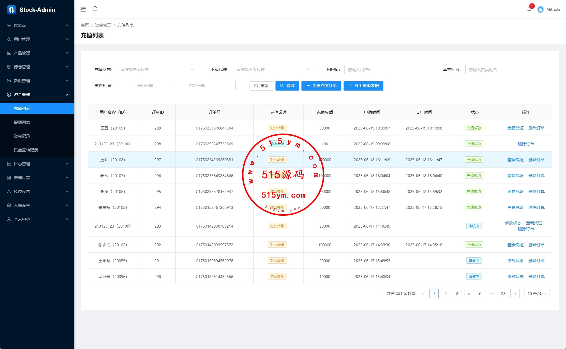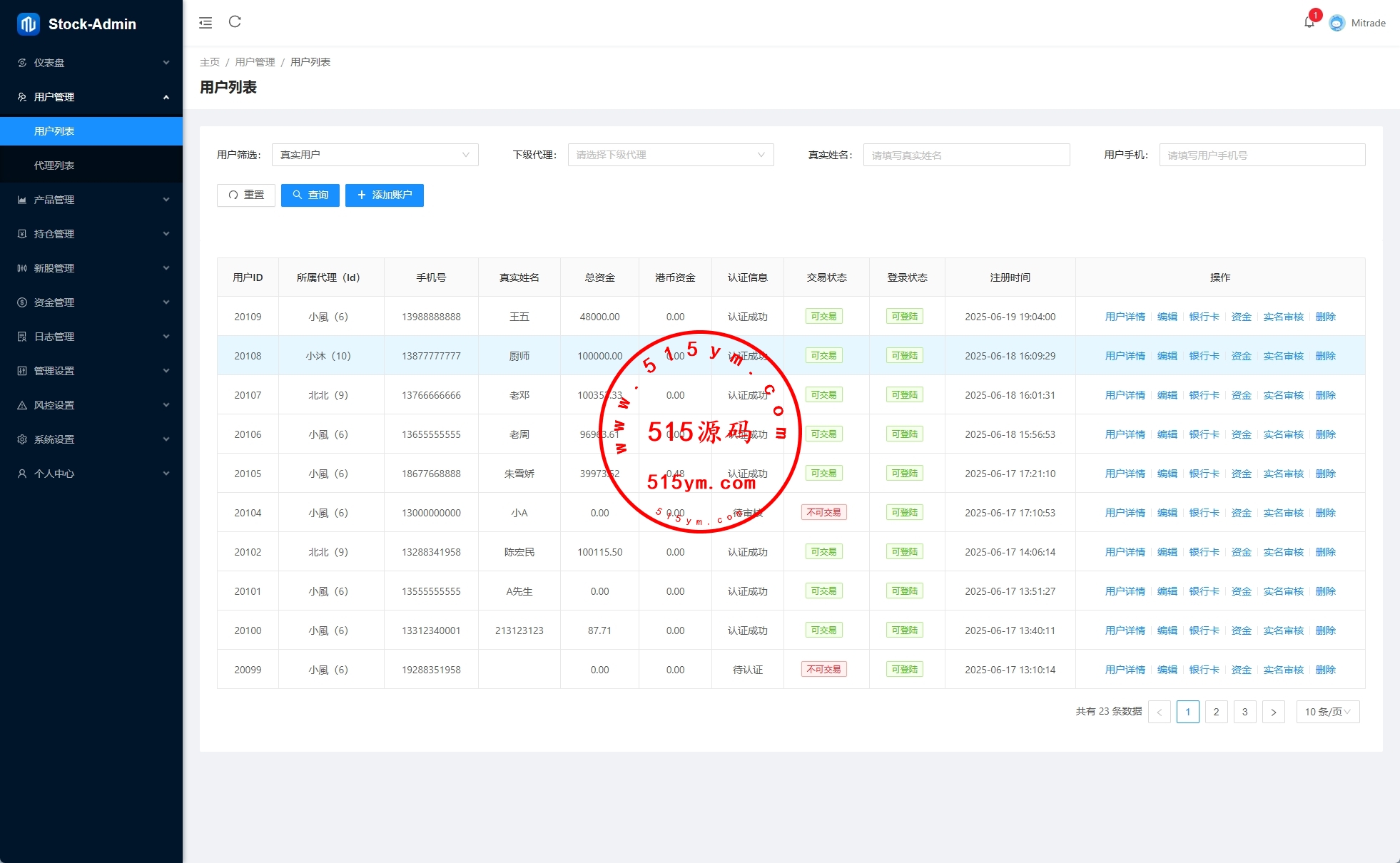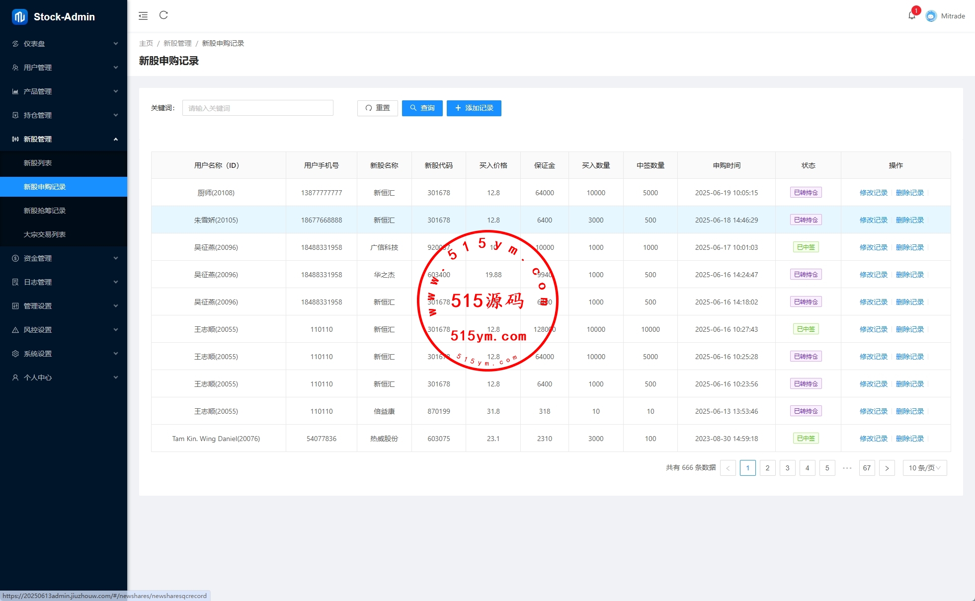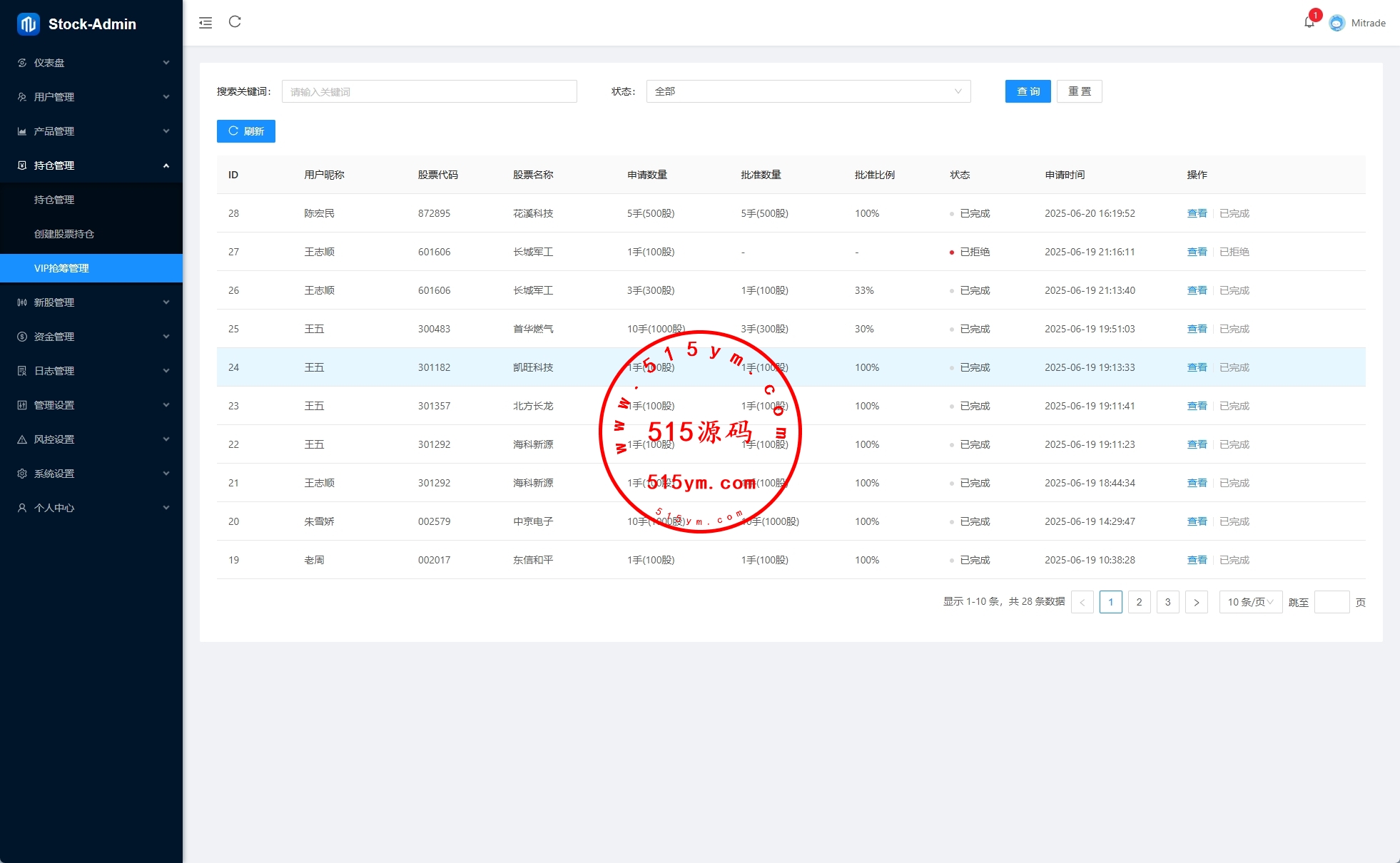 前端VUE,后台VUE,API端JAVA开发带源码 系统功能齐全,二开:涨停买入1000,后台手动通过100-900等