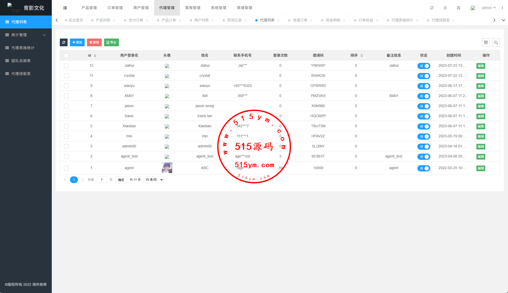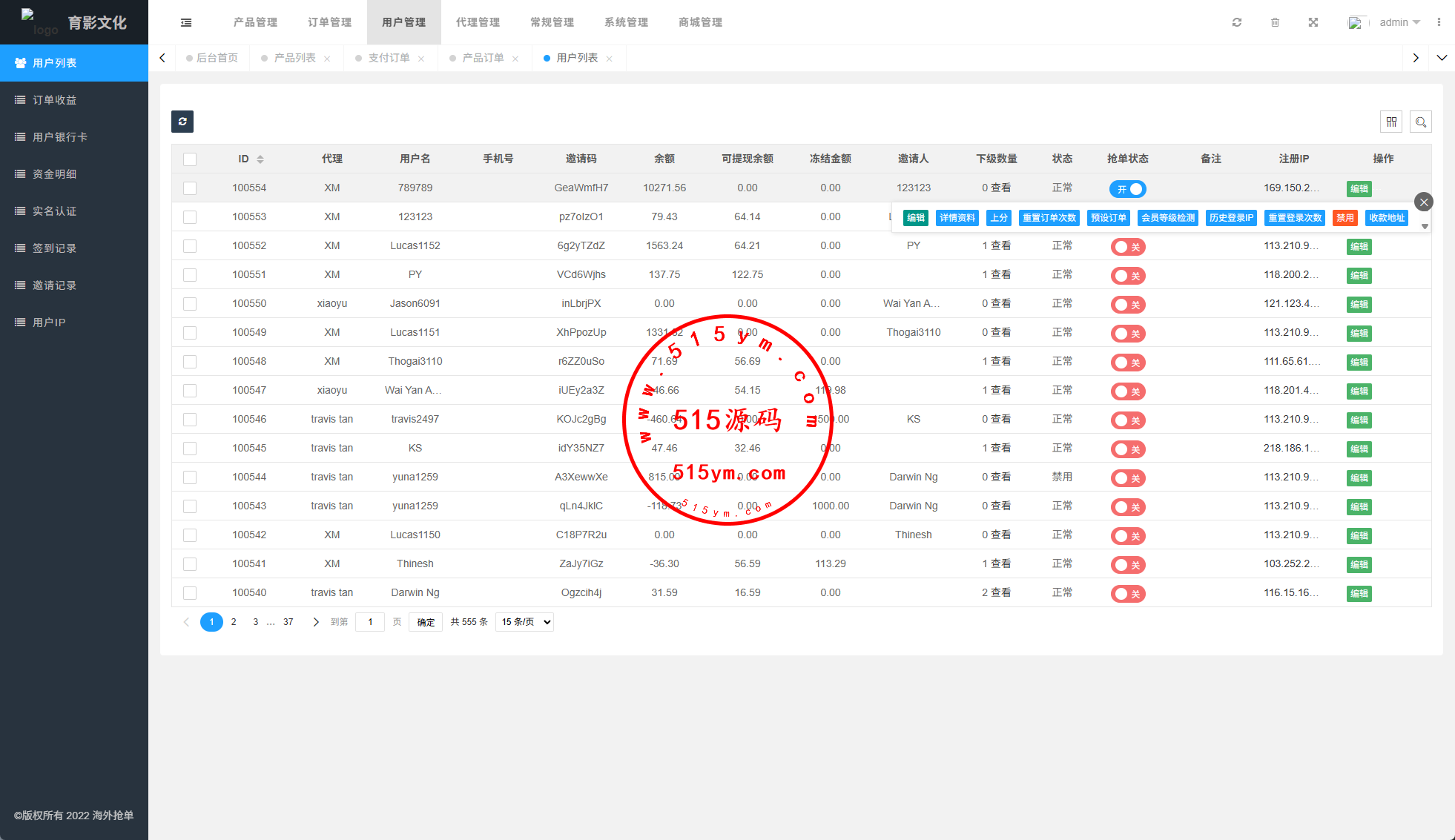系统功能:抢单开关、预设订单、重置订单、签到、代理等功能